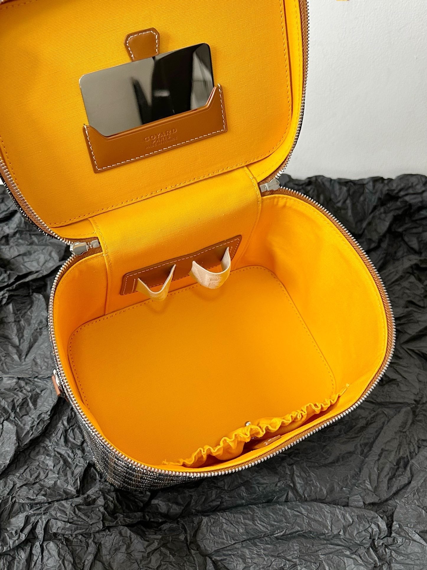 GOYA MAKEUP BOX BAG 20CM BLACK AND TAN CANVAS