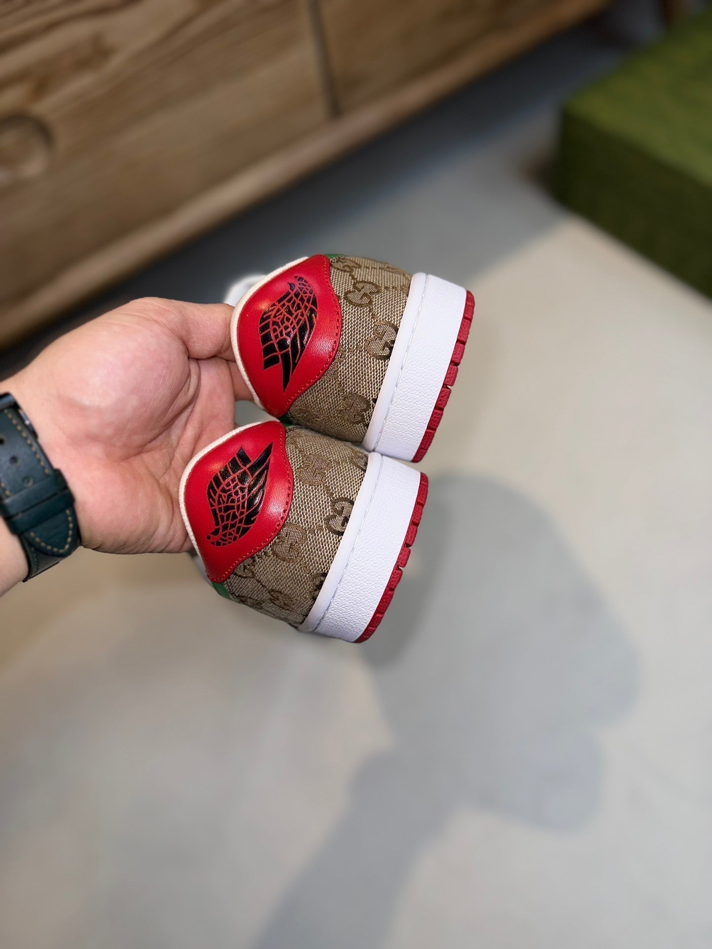 • Upper: Made from calf leather, brand PVC totem, fabric tag on the tongue.