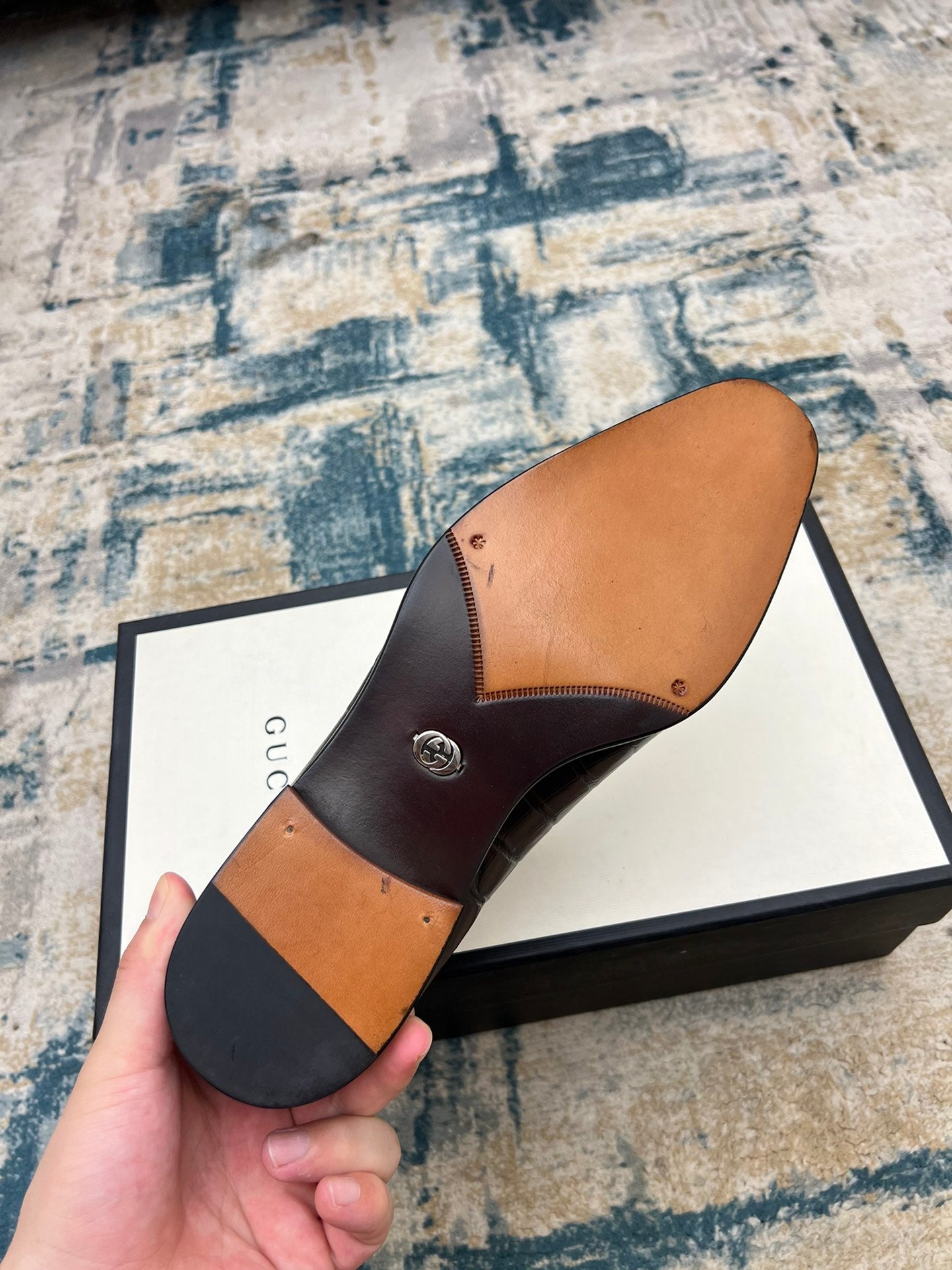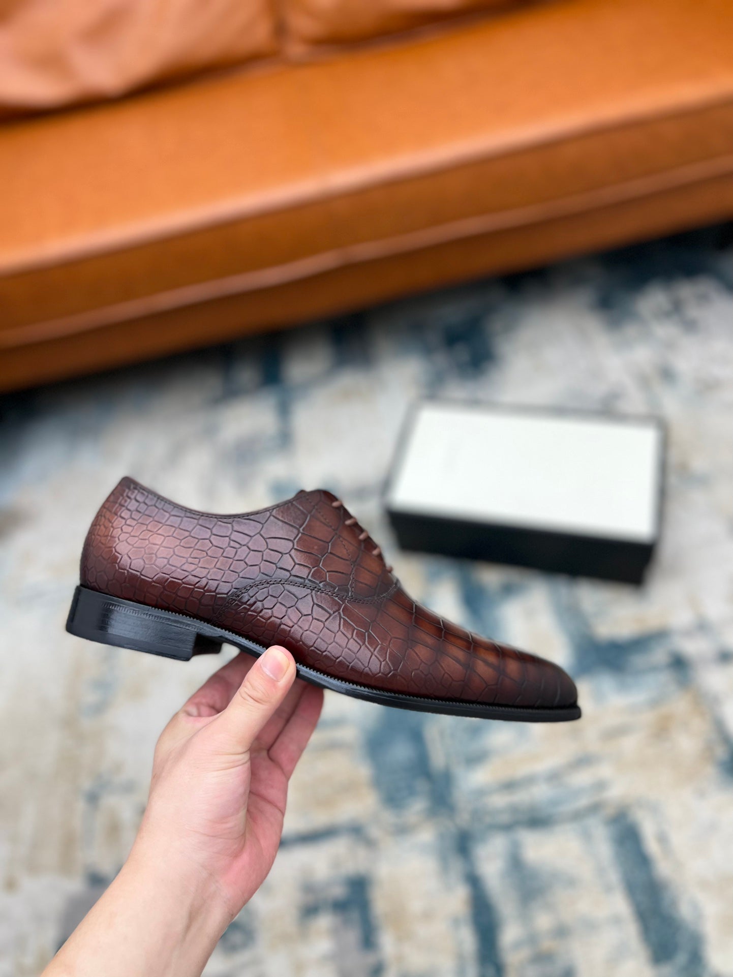 GG Men's Dress Shoe Brown Crocodile Embossed Calfskin 533108