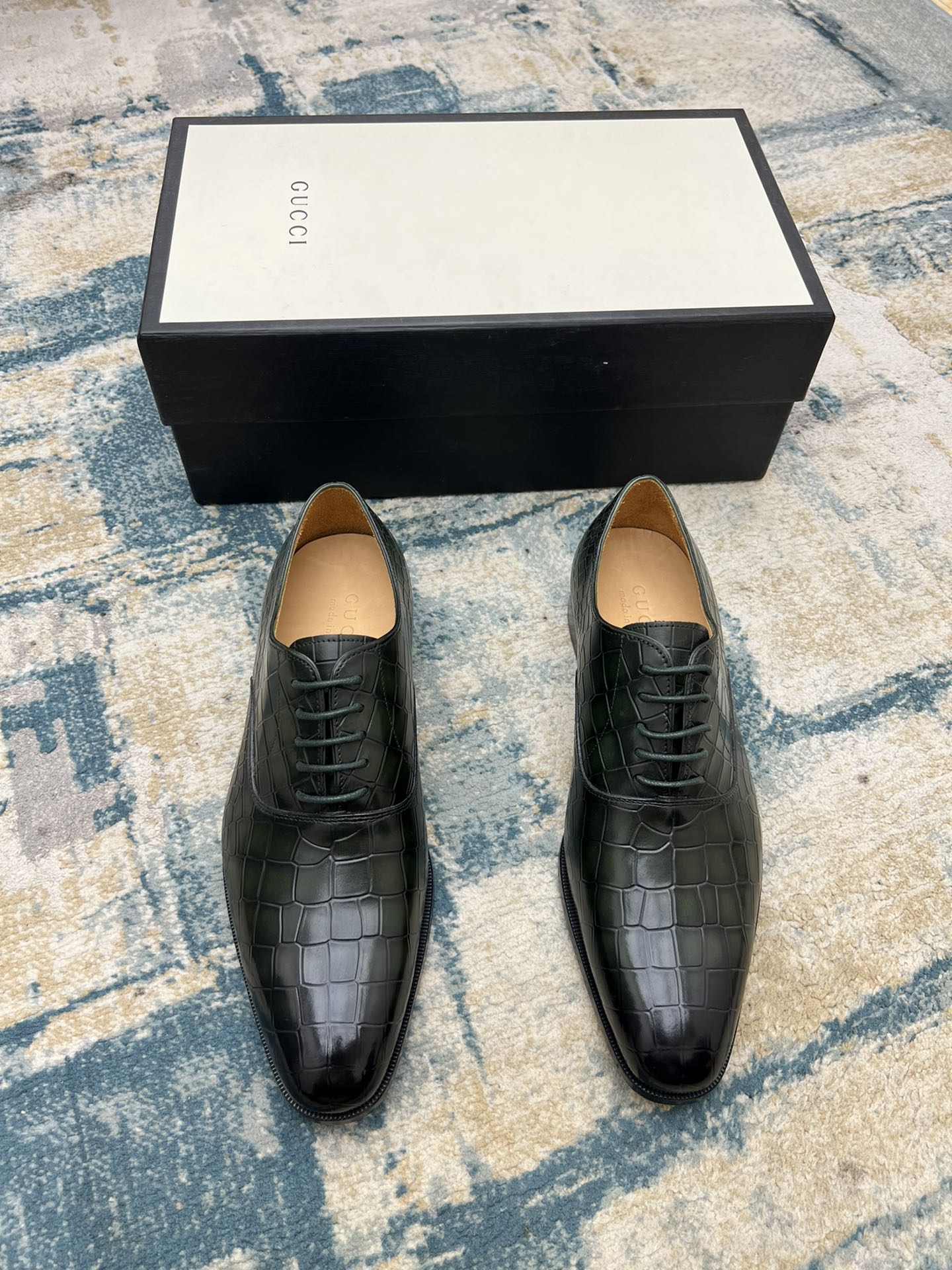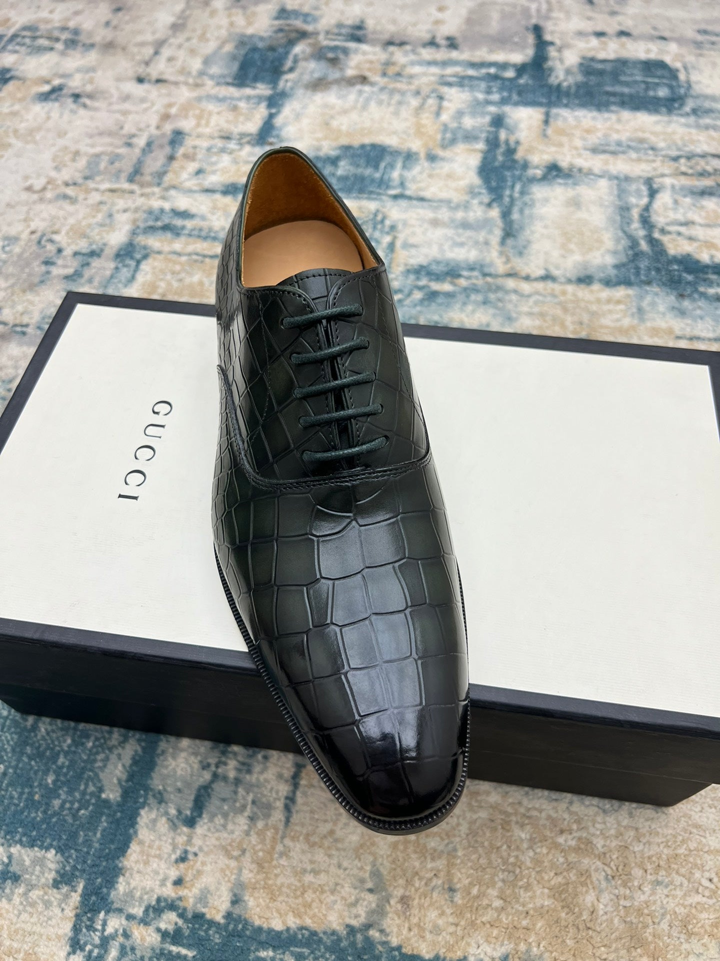 GG Men's Dress Shoe Dark Green Crocodile Embossed Calfskin 533109