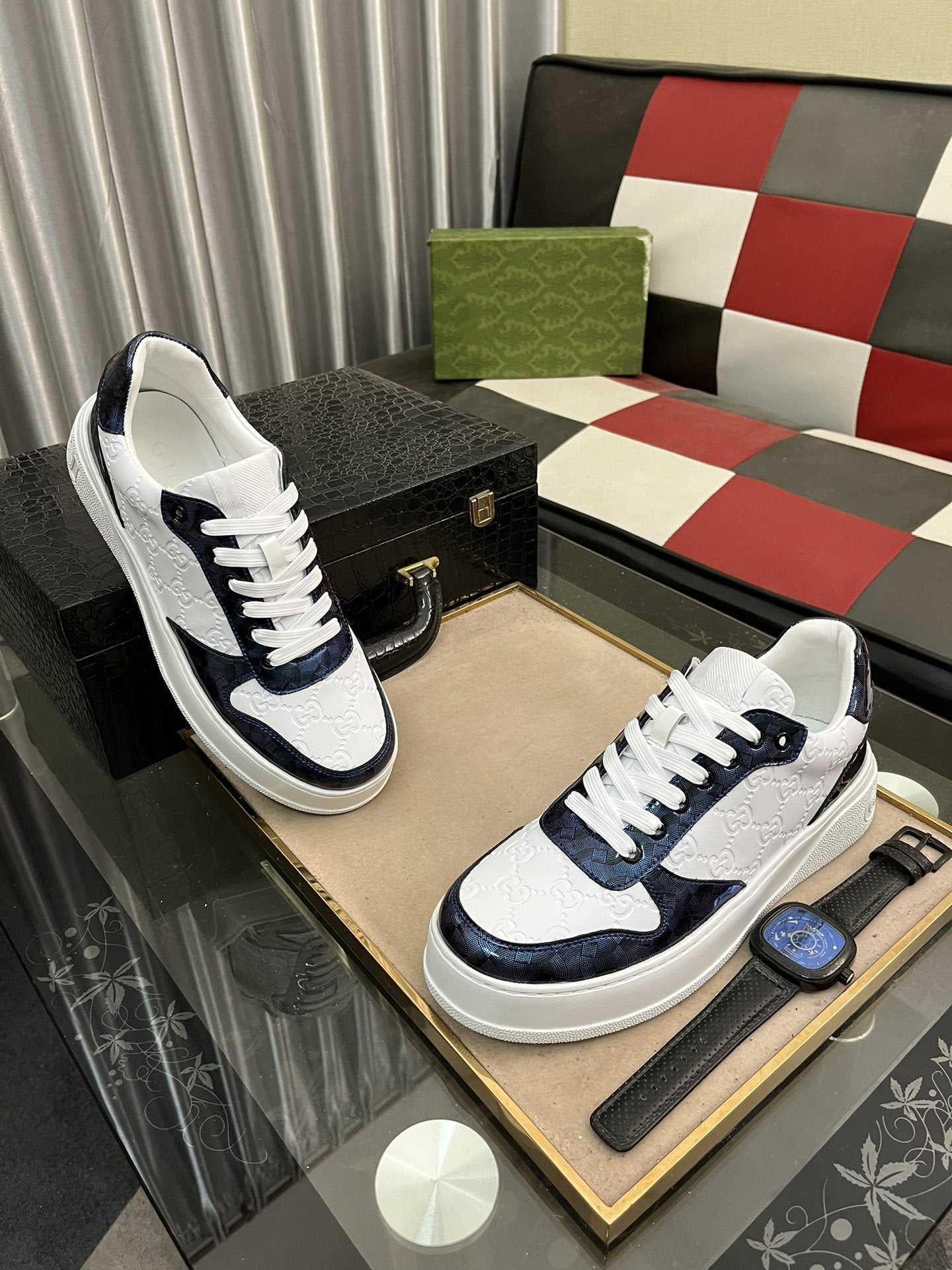 GG SNEAKERS IN EMBOSSED BLUE WHITE COWHIDE LEATHER