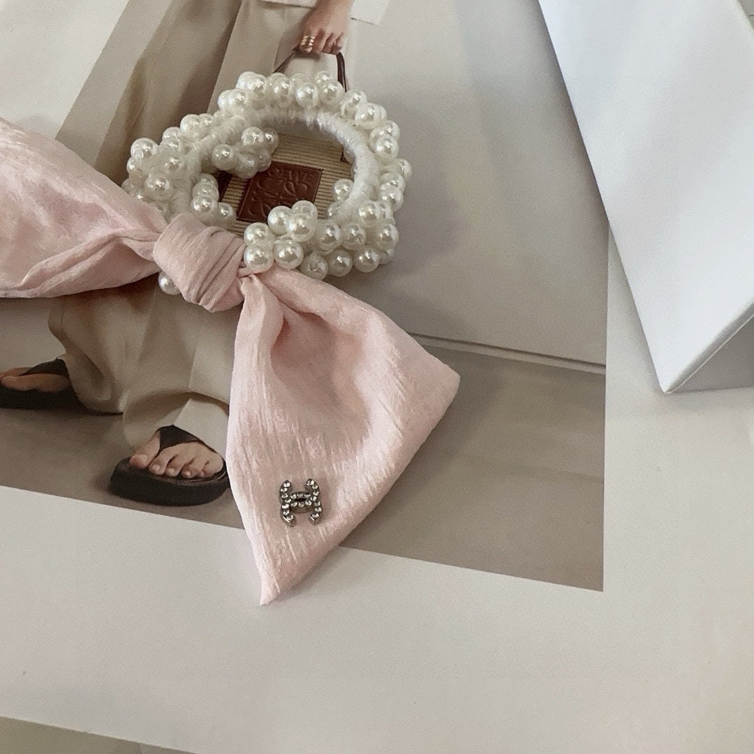 LIGHT PINK WRINKLED FABRIC WITH PEARL SCRUNCHIE 358300