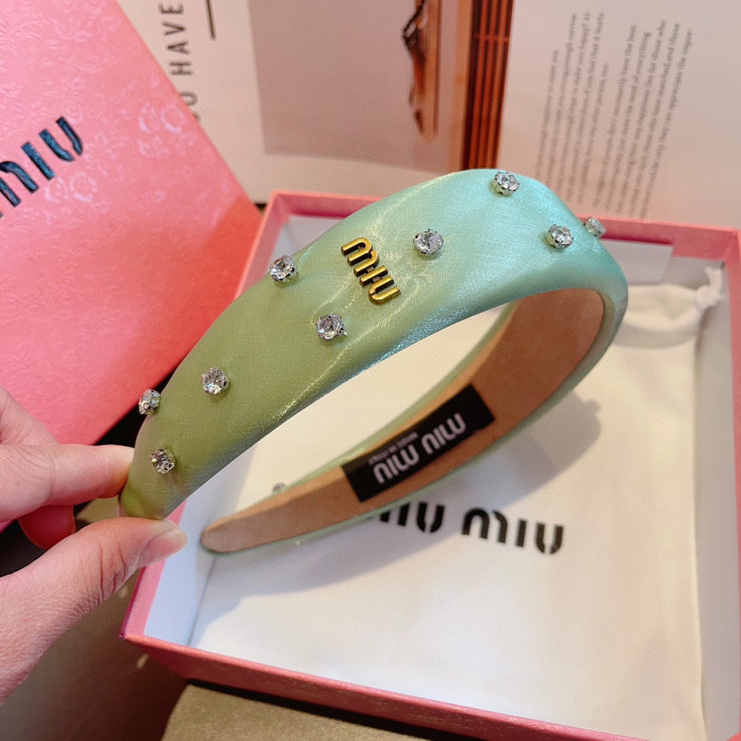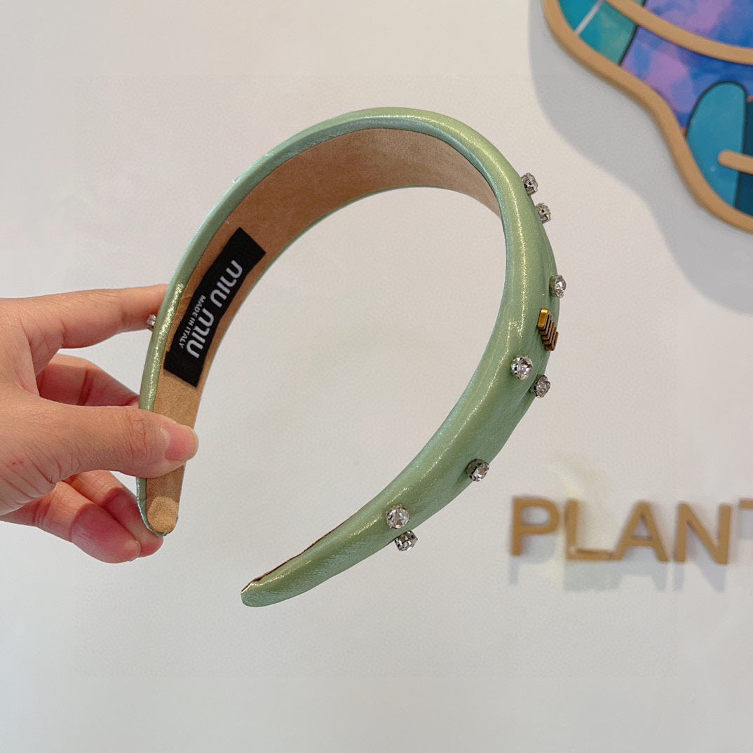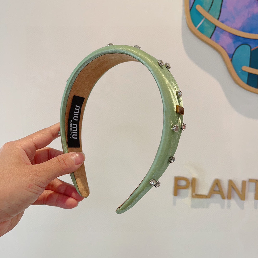 THICK HEADBAND IN JADE GREEN SILK ATTACHED DIAMONDS 406043