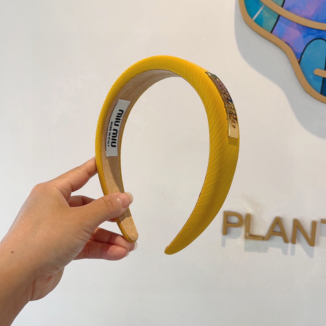 THICK HEADBAND IN YELLOW DIAGONAL LEATHER 425478