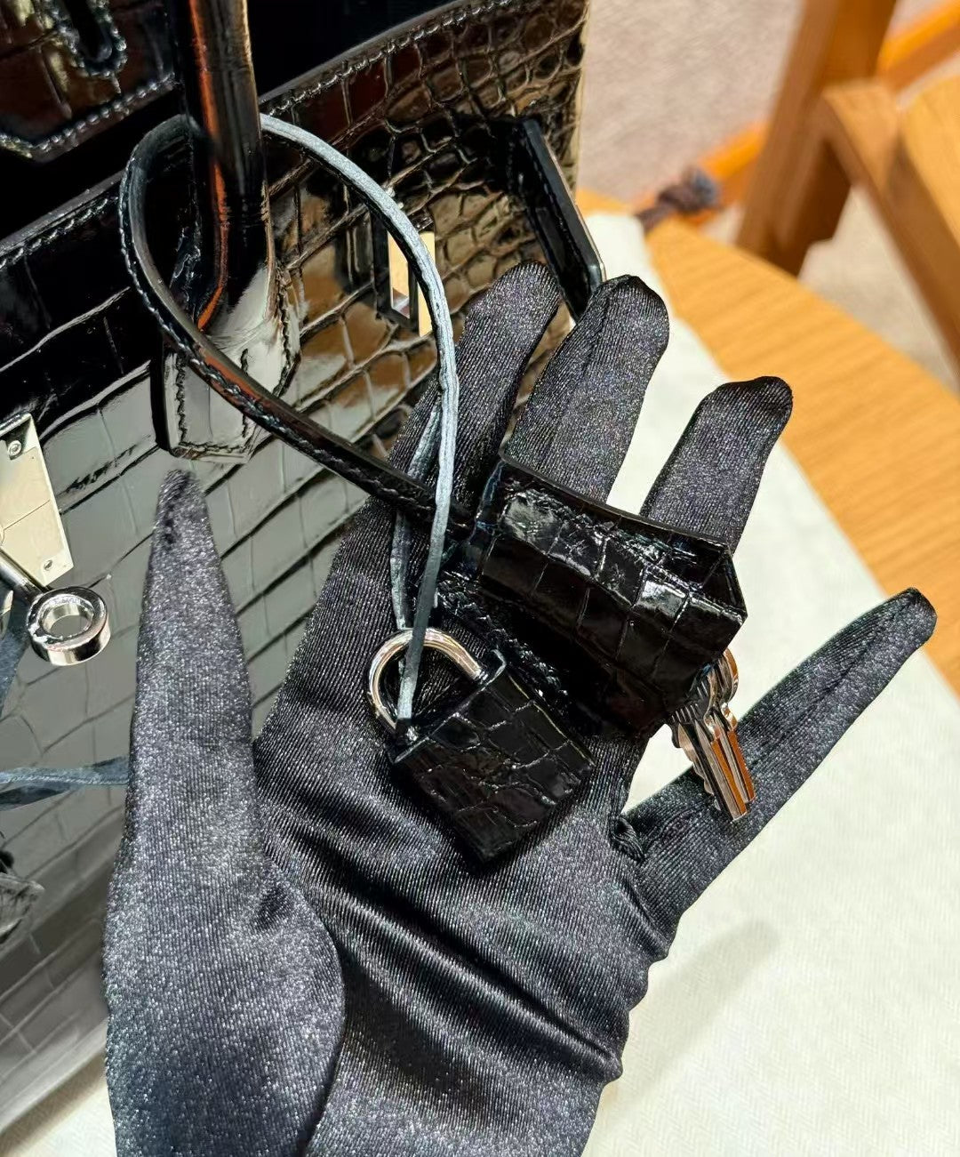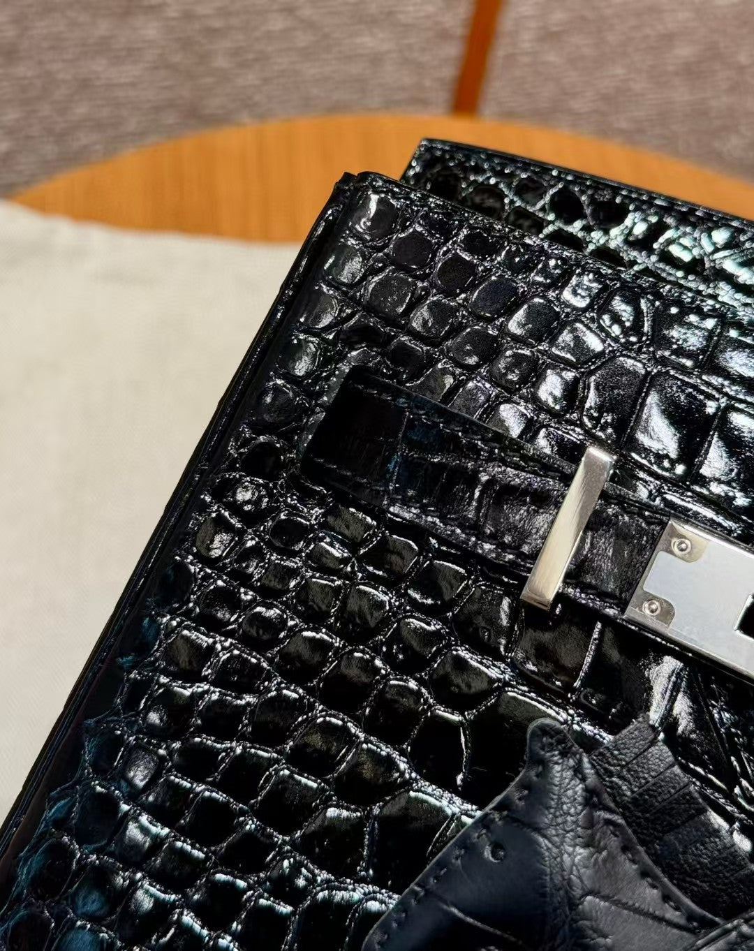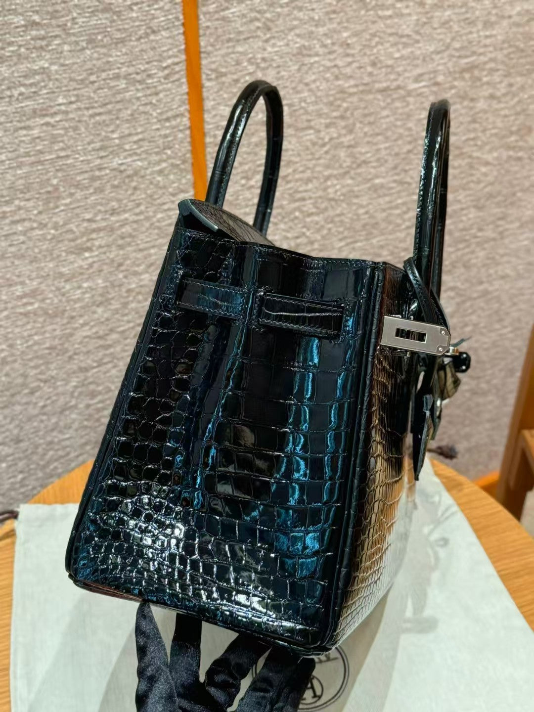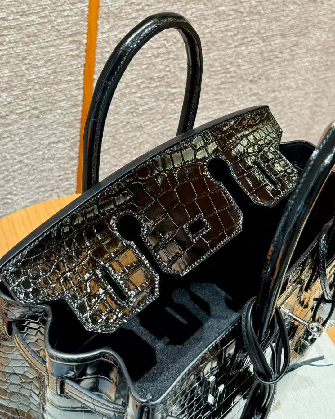 HM BIRKIN BAG 35 BLACK CROCODILE EMBOSSED LEATHER