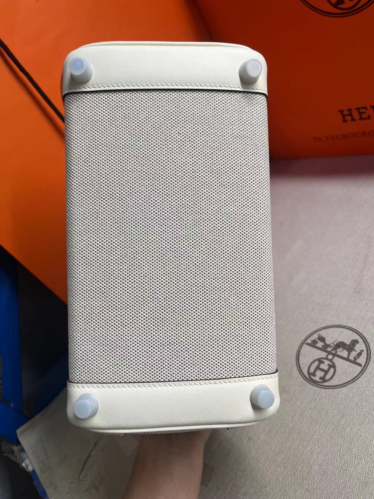 HM Quadrille Birkin 25cm White Swift Leather Grey Toile