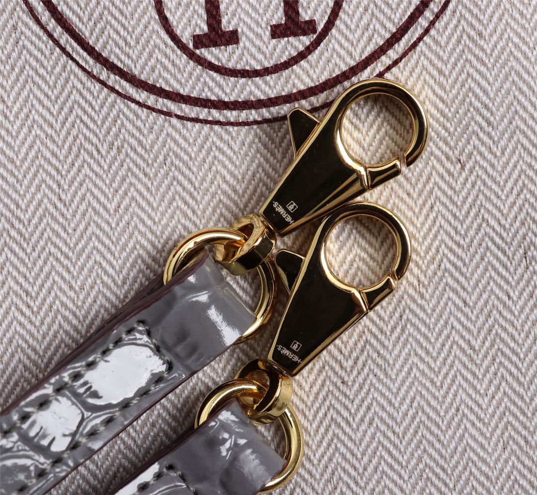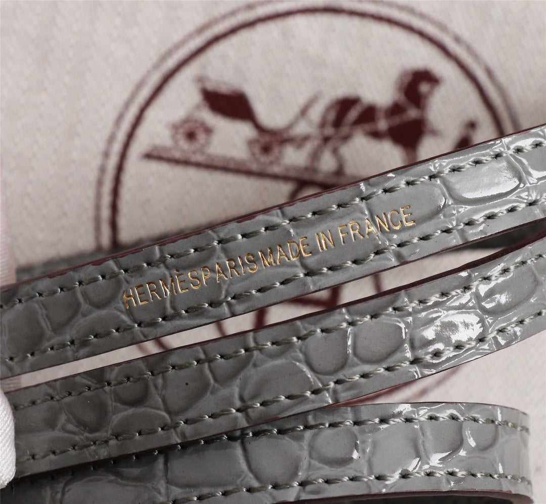HM KELLY MINI 22 FOSSIL CROCODILE EMBOSSED CALFSKIN GOLD HARDWARE