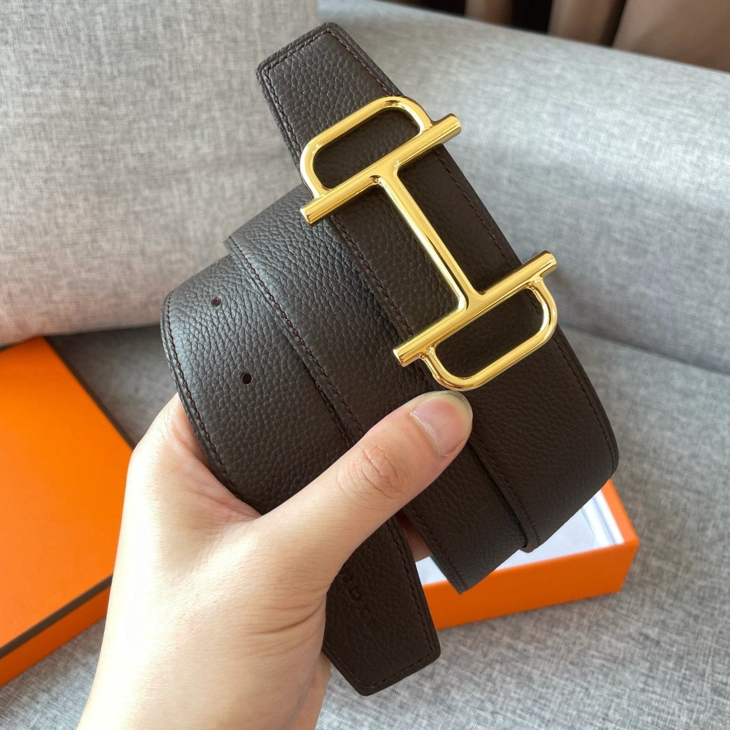 H Buckle in permabrass plated metal.