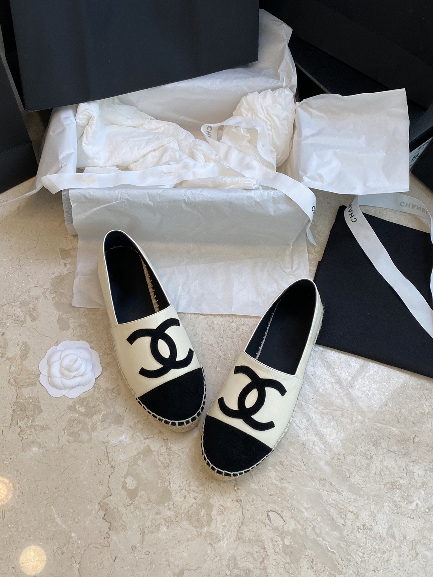 espadrilles white lambskin black velvet