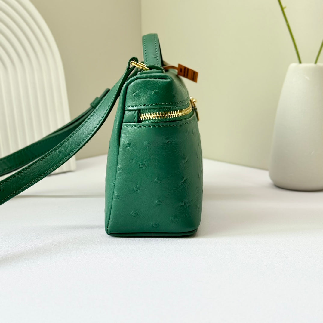 LP Extra Bag 19cm Ostrich Pattern Green Calfskin Gold Hardware