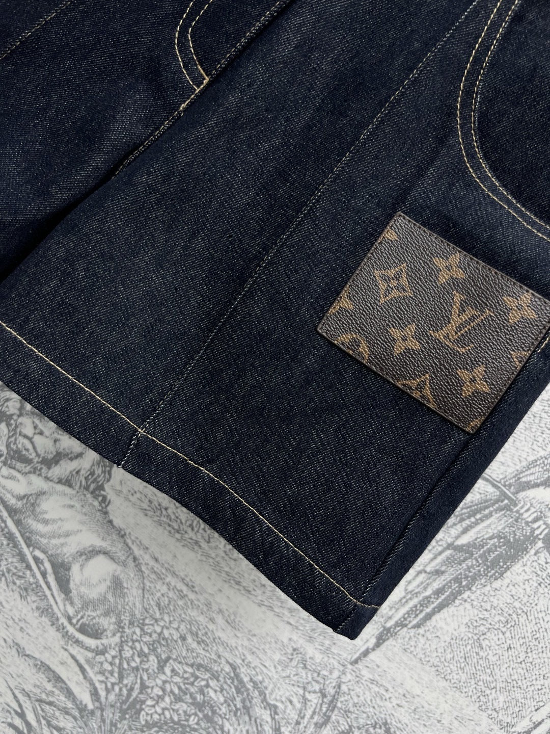 LV 25 Denim Shorts Black Cotton