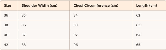 - Size : 36,38, 40, 42