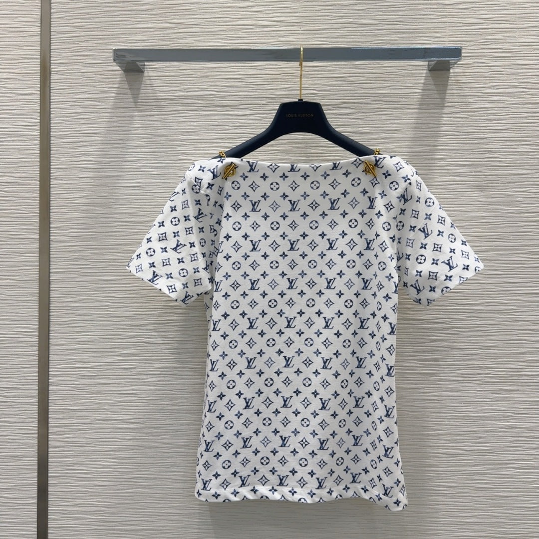 LV 25 Simple T-Shirt White Blue Cotton