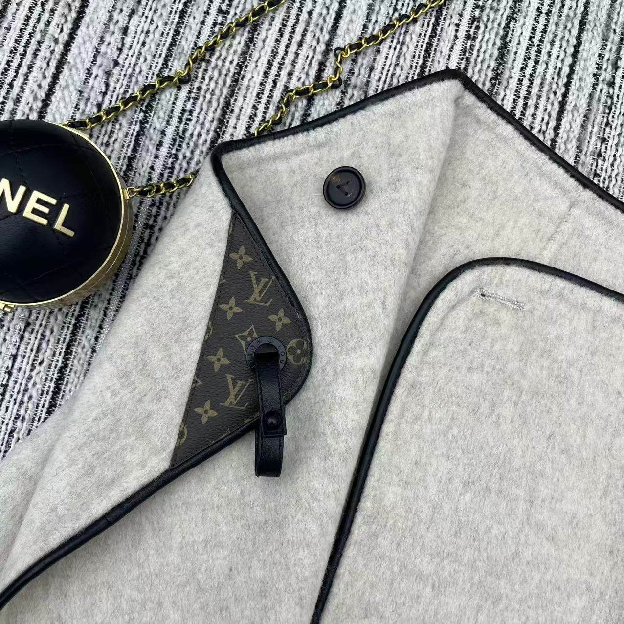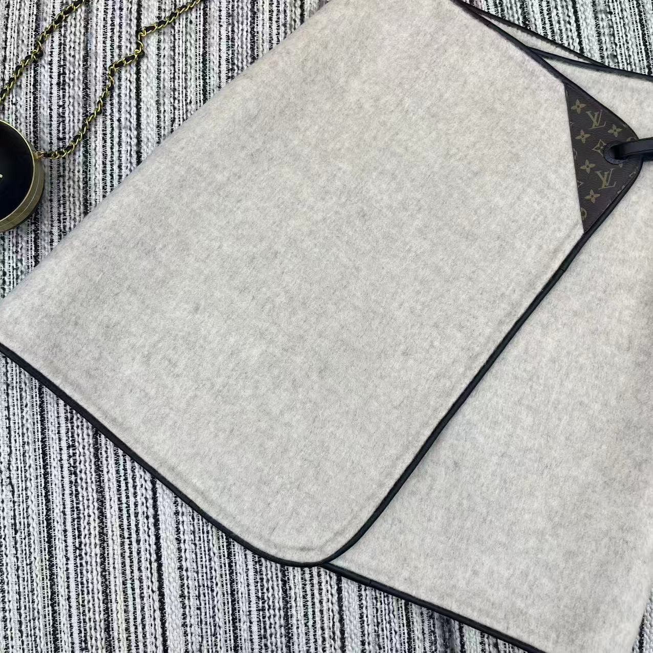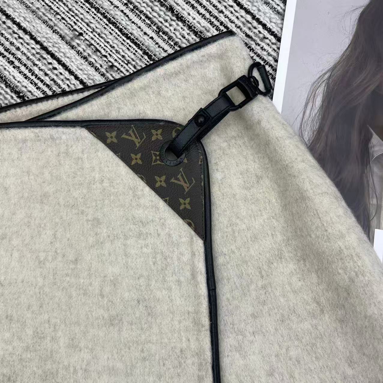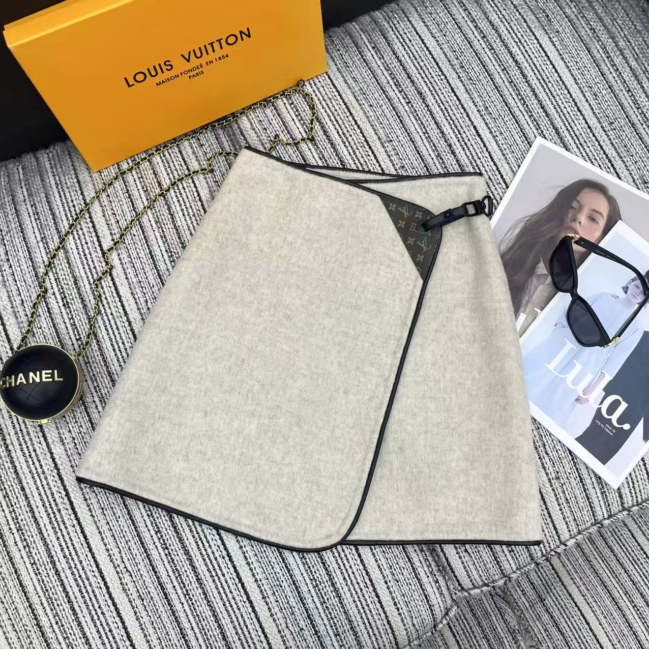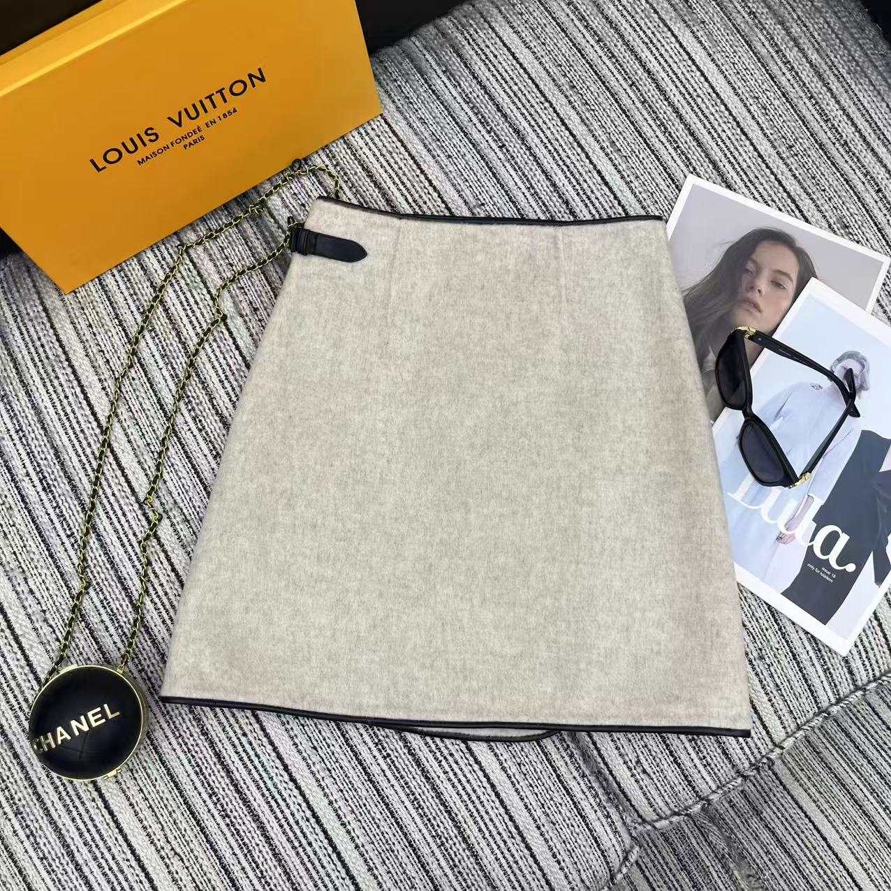 LV 25FW Double-Faced Wool Short Skirt Lambskin Edge Light Gray 311681