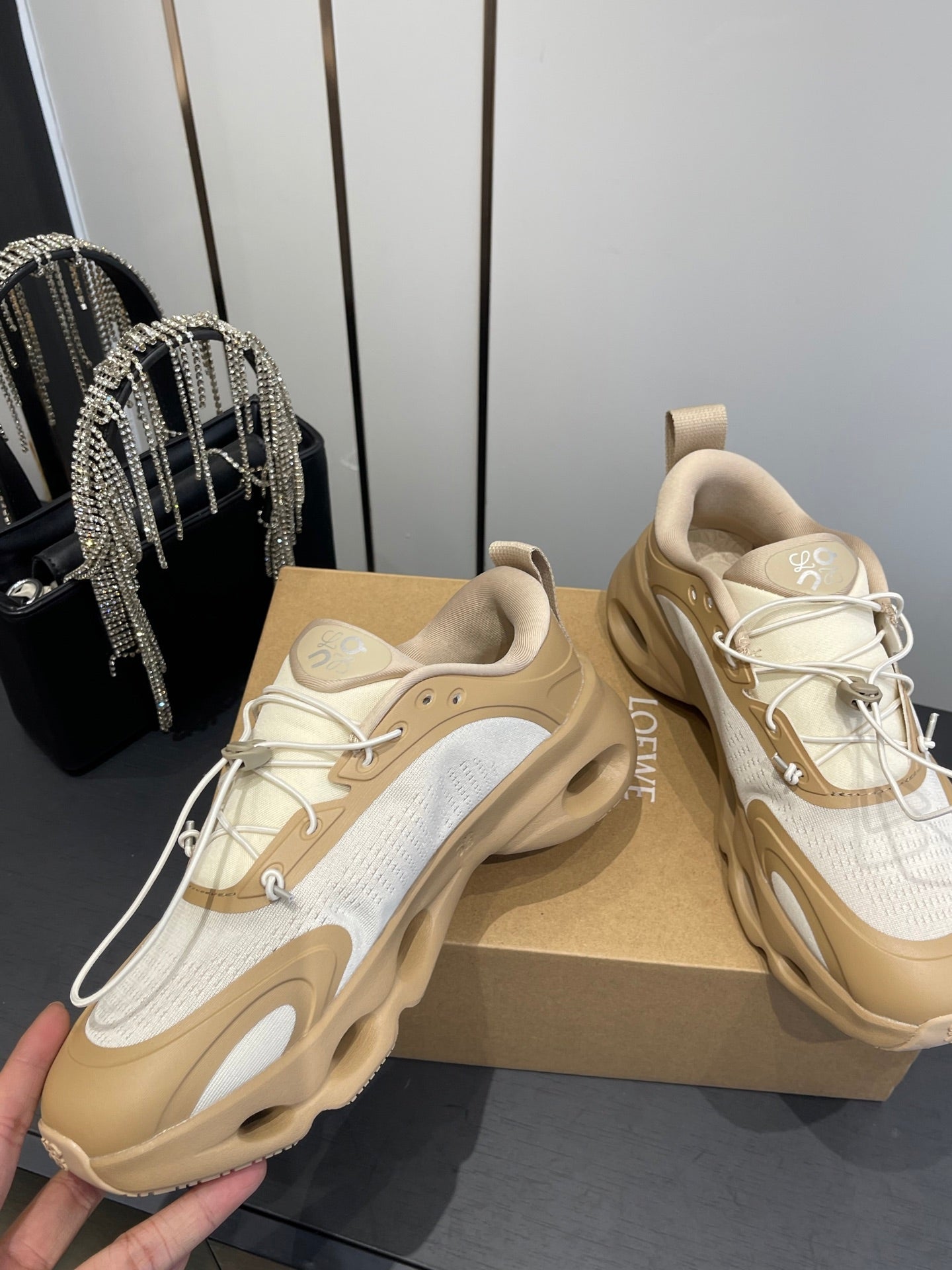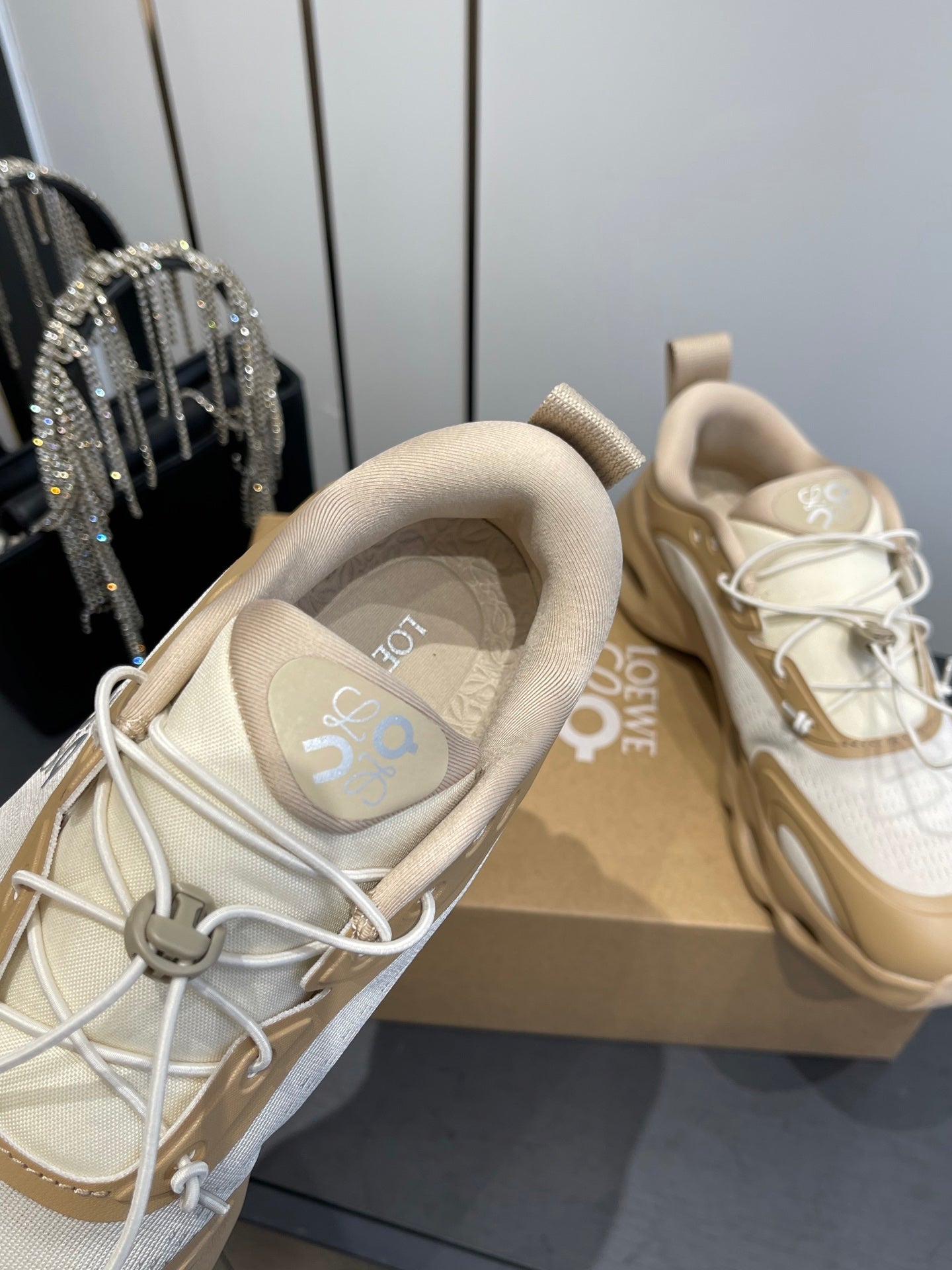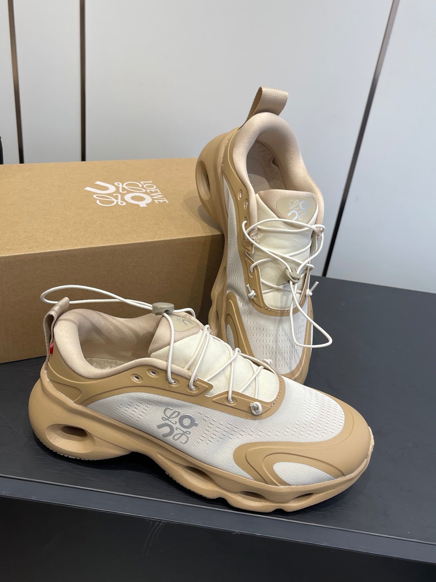 Loewe x On Cloudsolo Sneakers Cream Grey and Light Beige Polyester and Mesh 533485