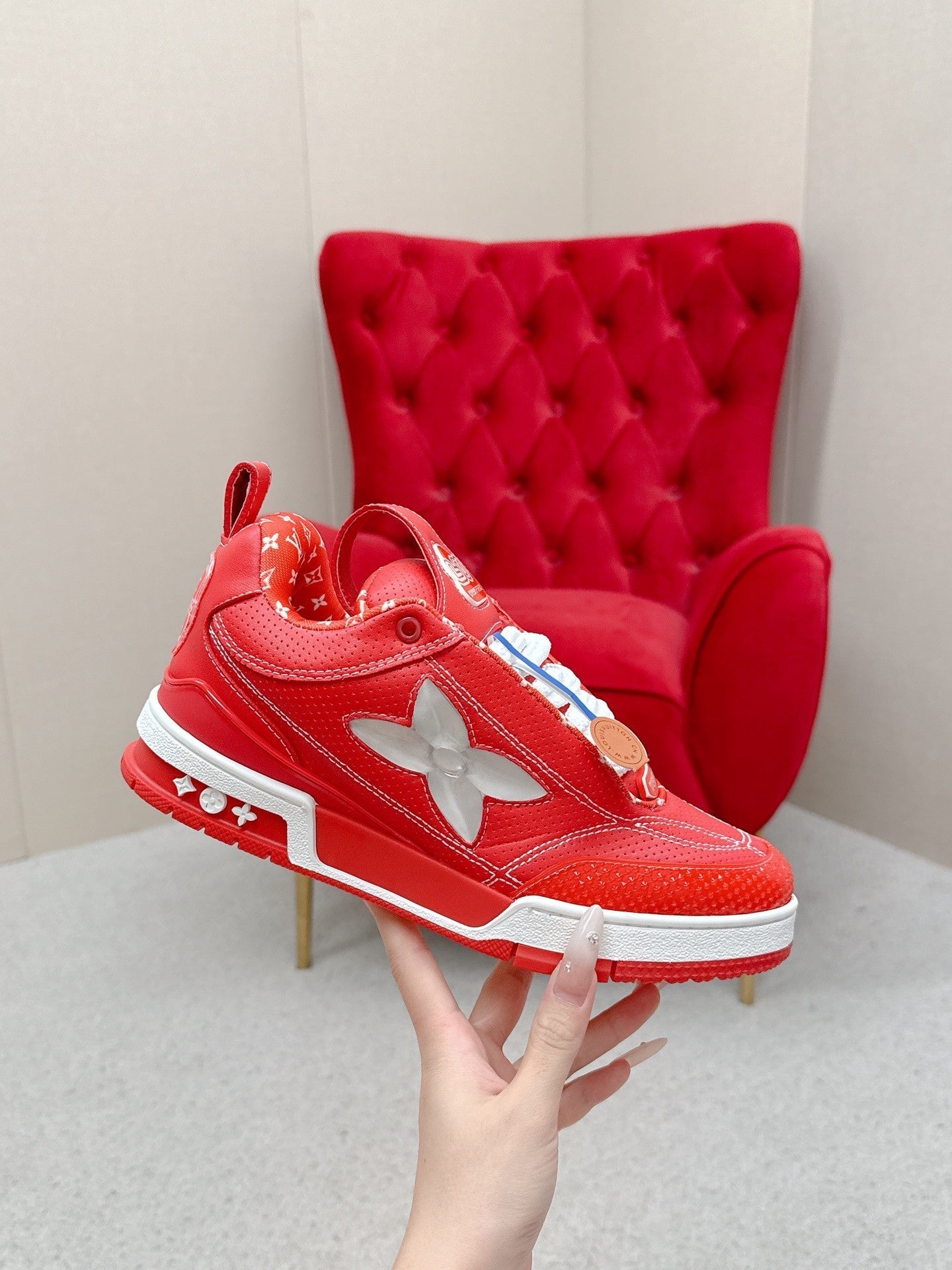 LV Skate Sneakers Orange Metallic and Perforated Calf Leather 528547