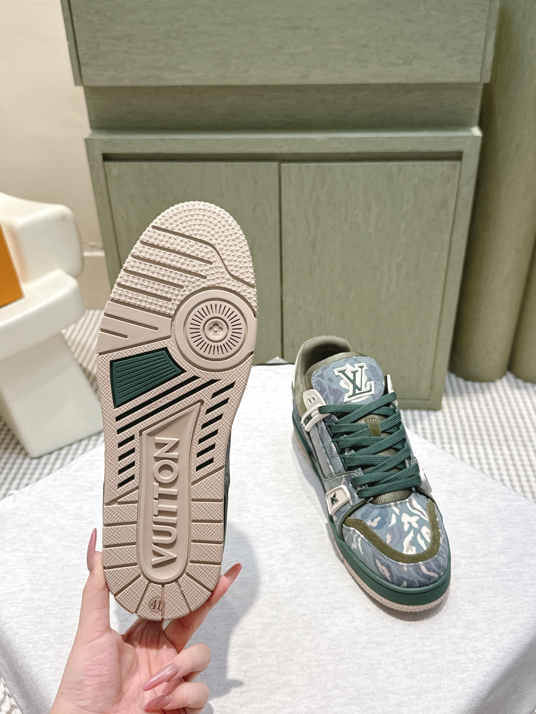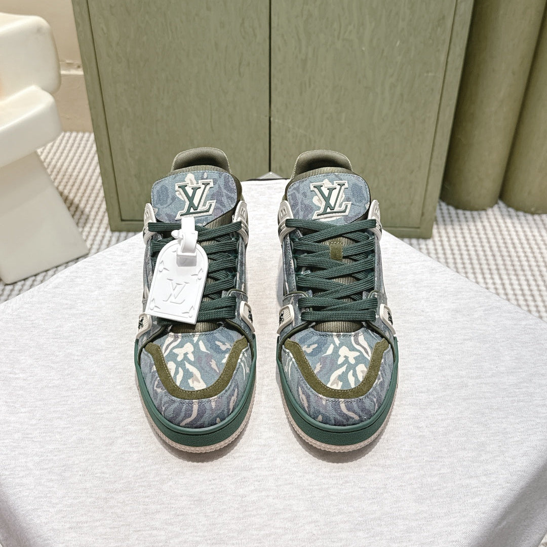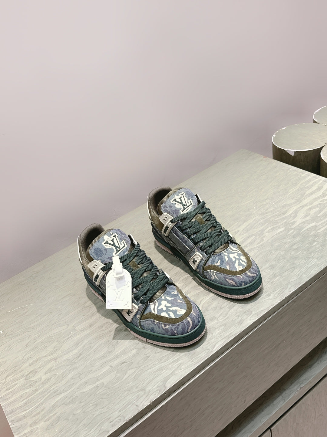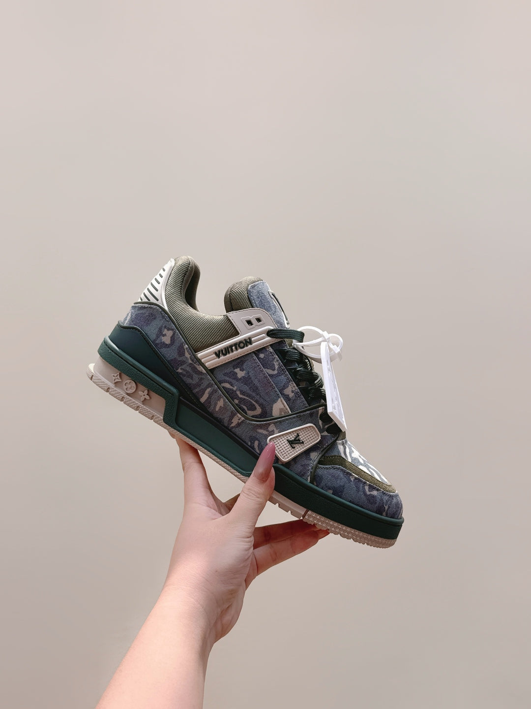 LV Trainer Sneakers Dark Oliver Monogram Denim 515188.