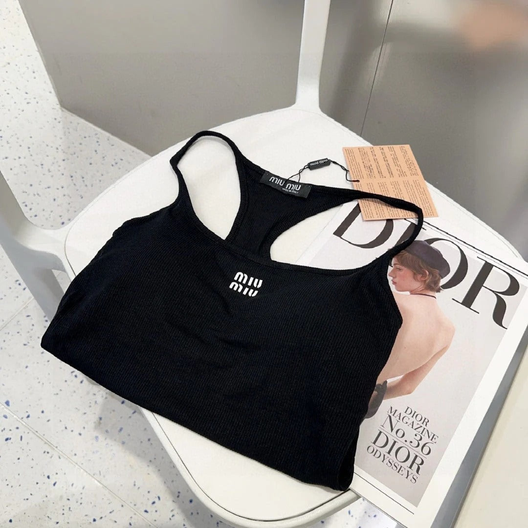 CAMISOLE 617514 IN BLACK COTTON RIBBED KNIT