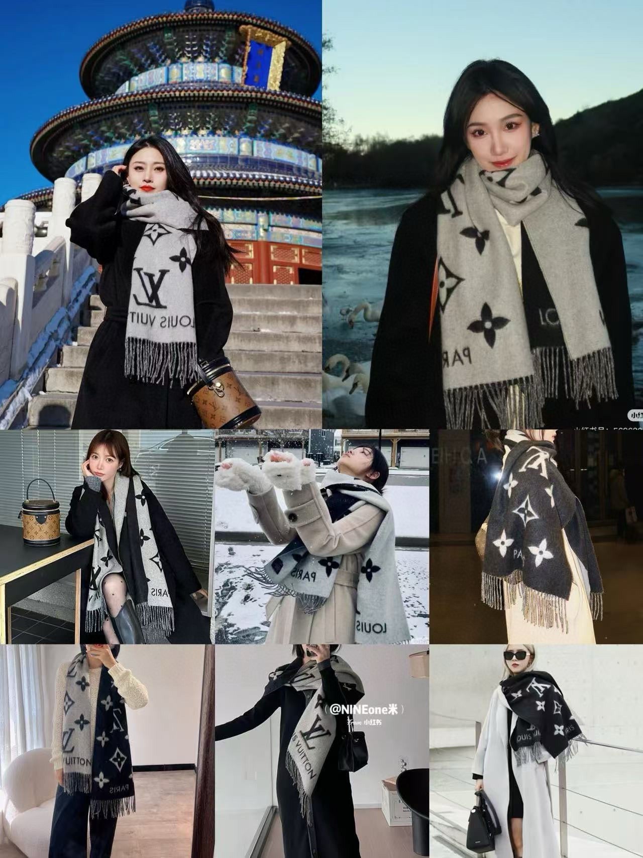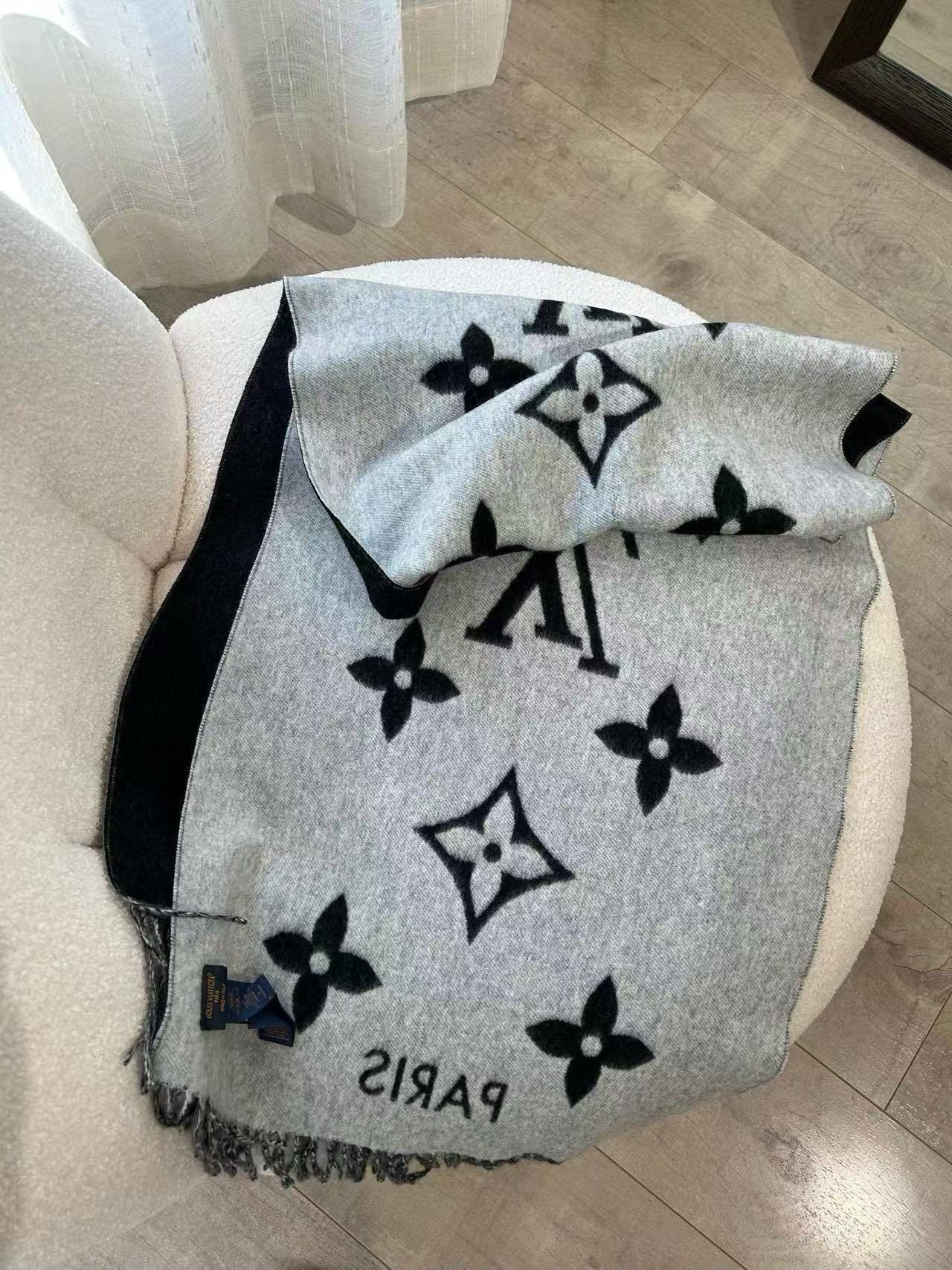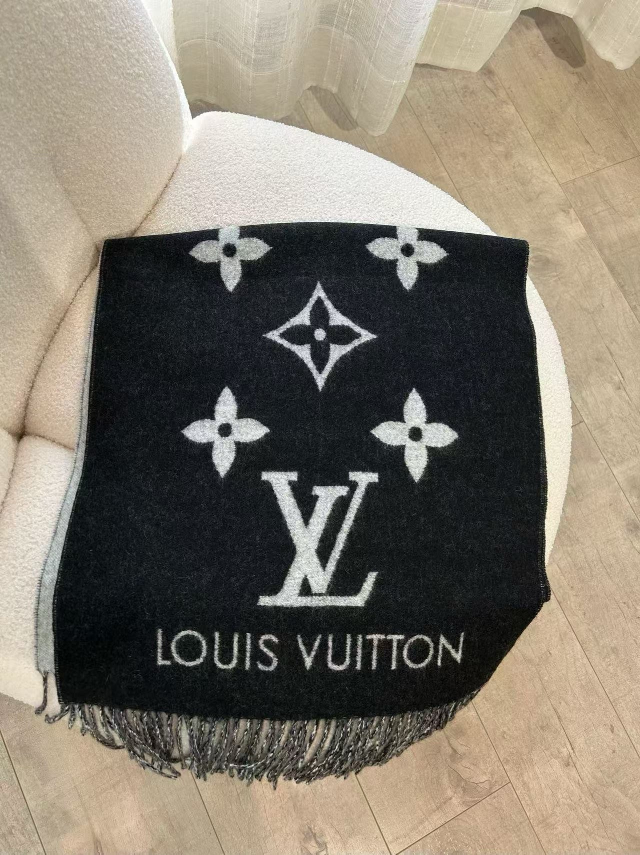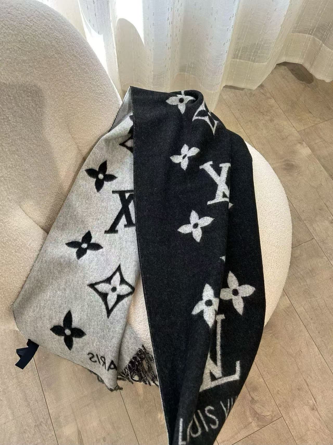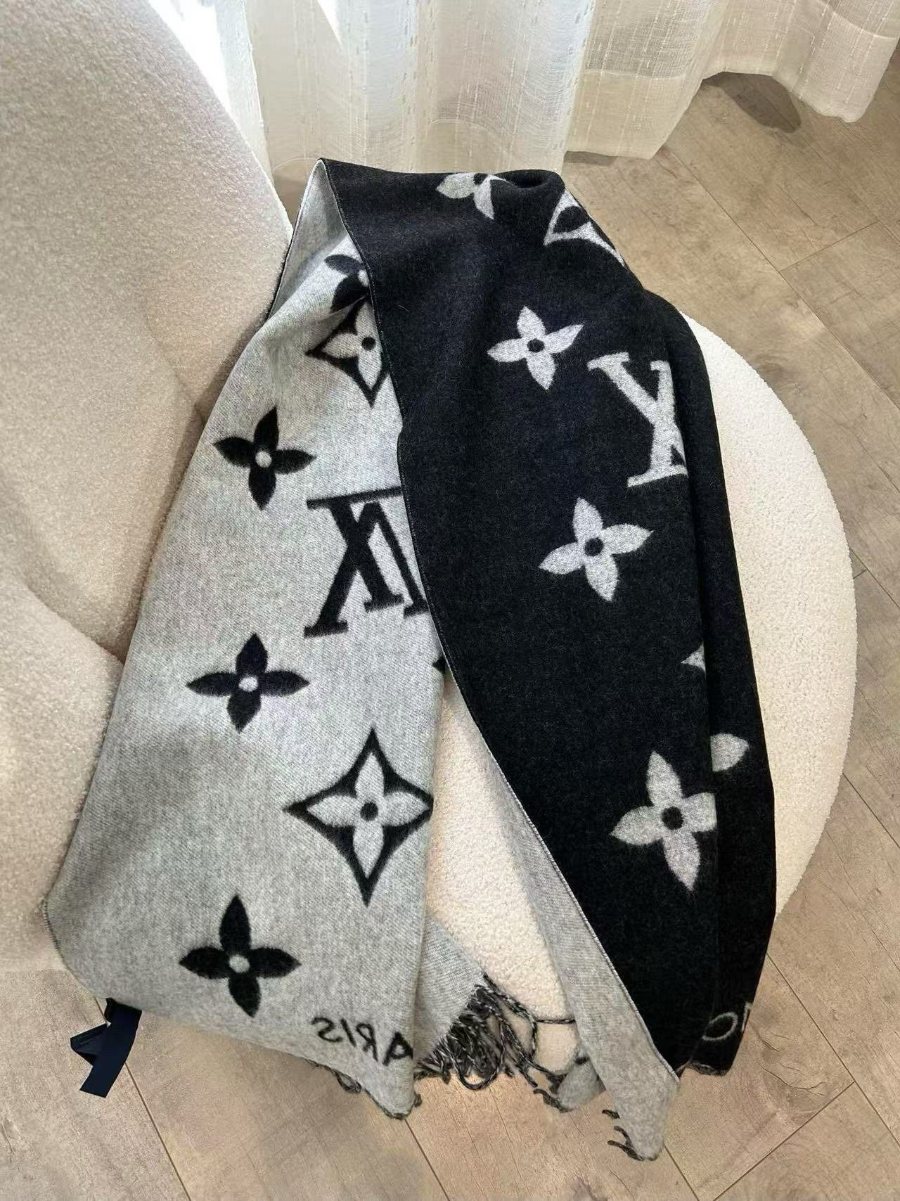 LV Reykjavik Scarf 170cm Black Gray Cashmere 839547