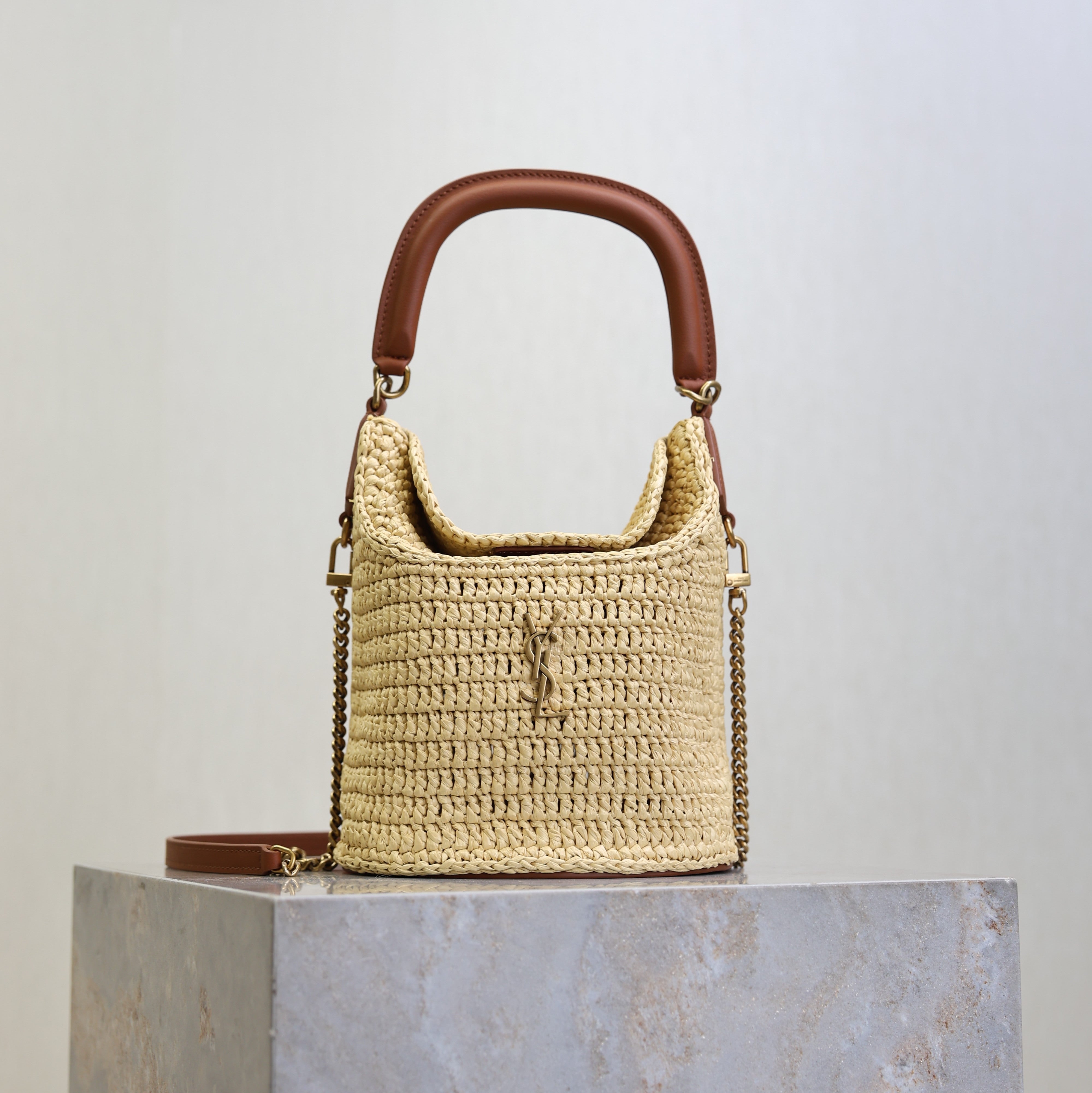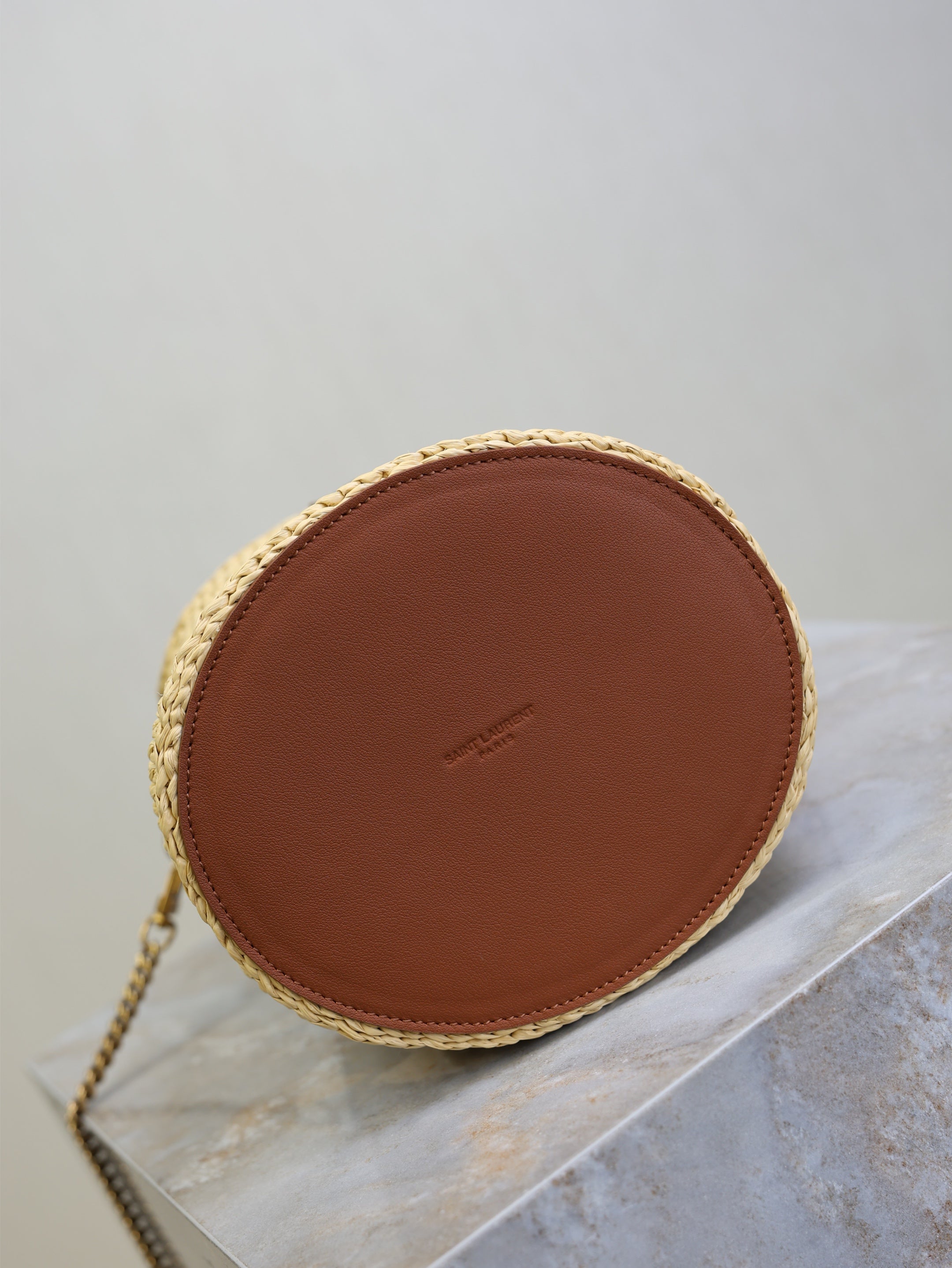 Gaby Bucket 17cm Brown Beige Raffia Leather GHW