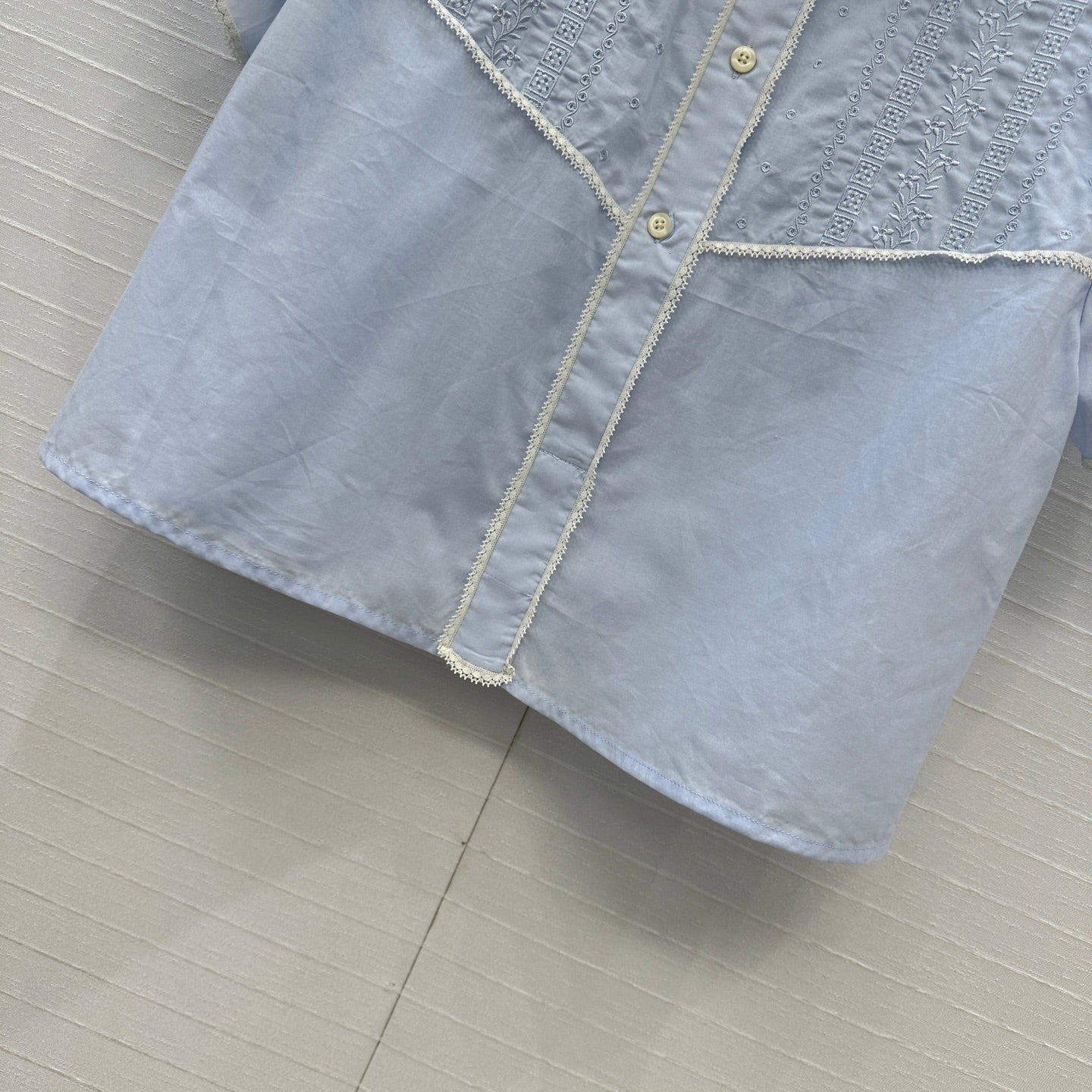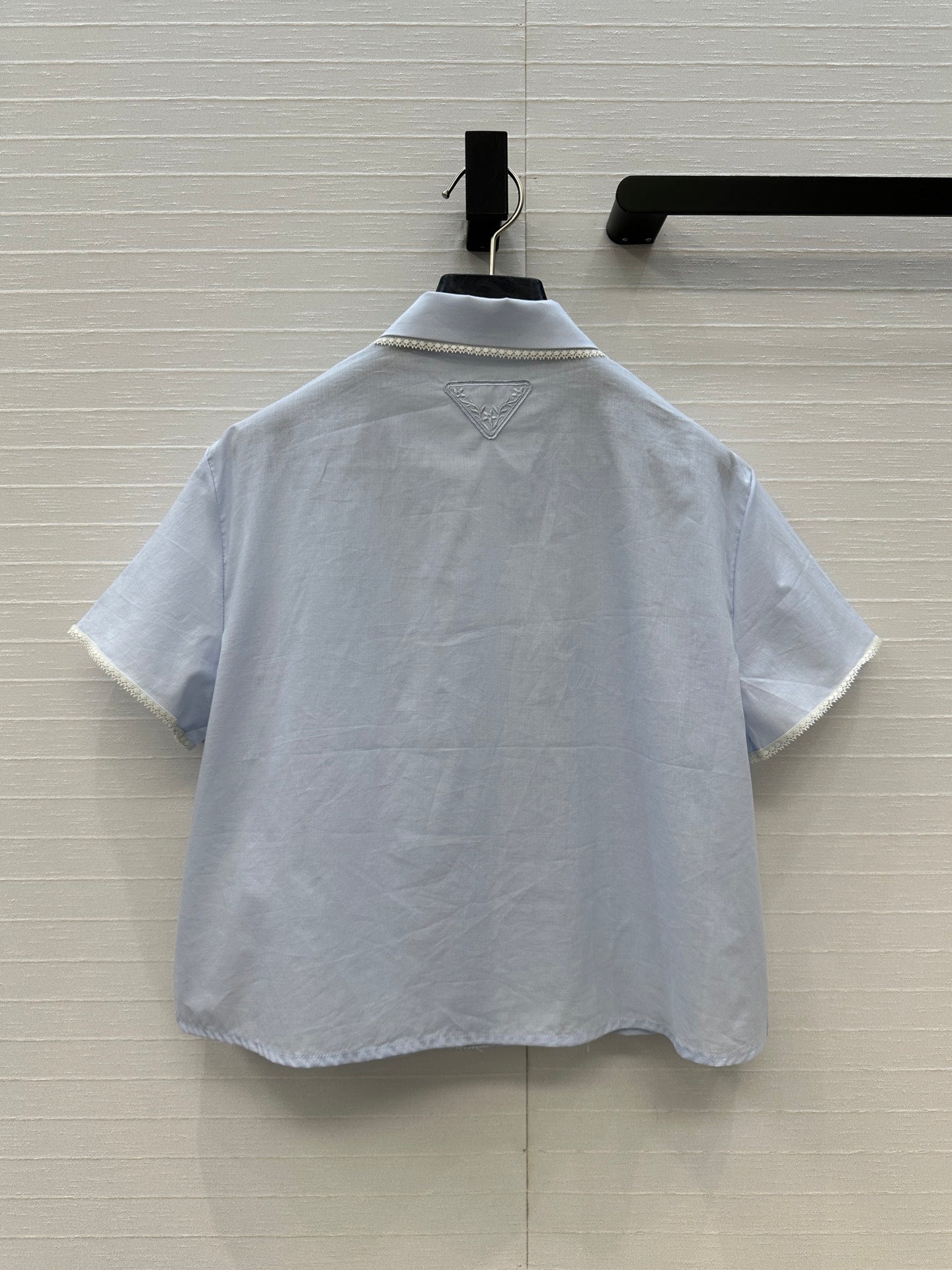 Prada 25 Lace Short-sleeved Shirt Blue Cotton