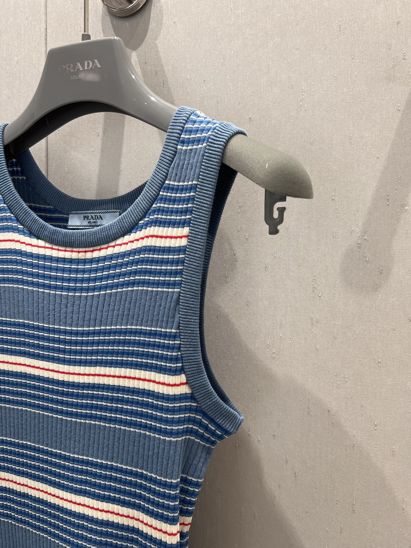 Prada 25 Sleeveless Knitted Vest Blue Cotton Poliamide 217852