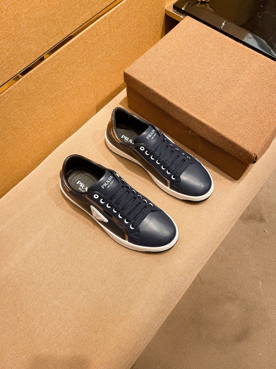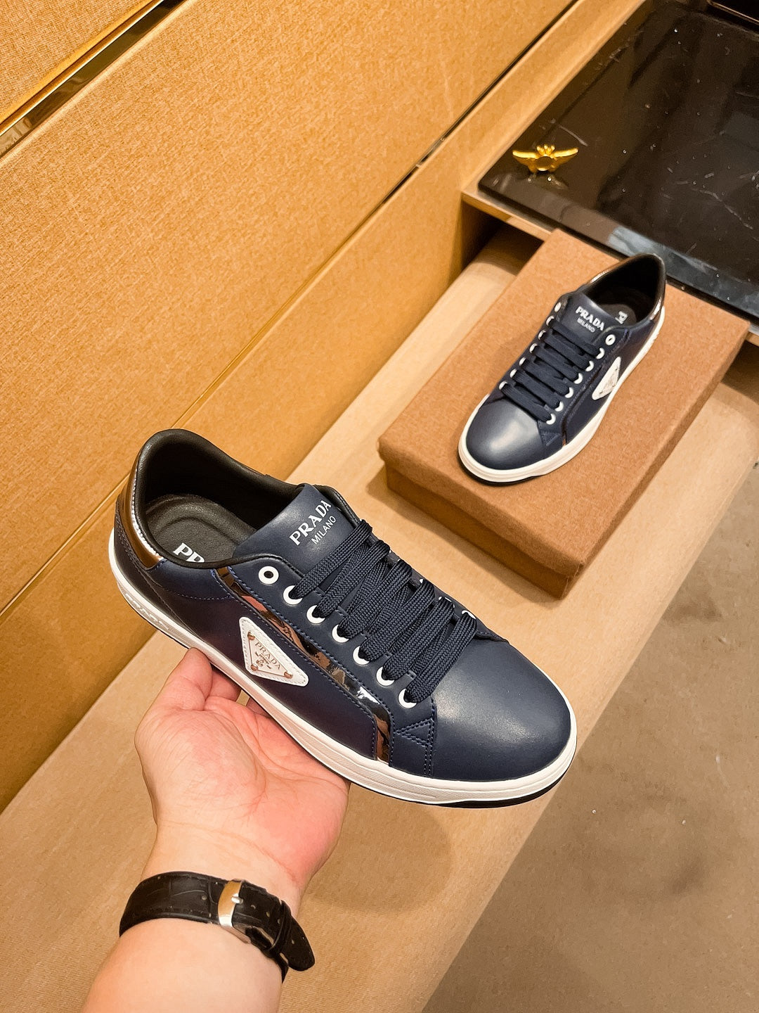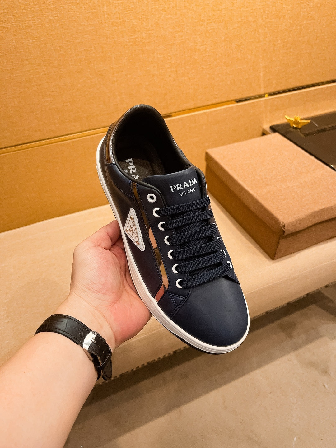 PRA SNEAKER IN NAVY BLUE CALFSKIN WITH GLOSSY GOLDEN