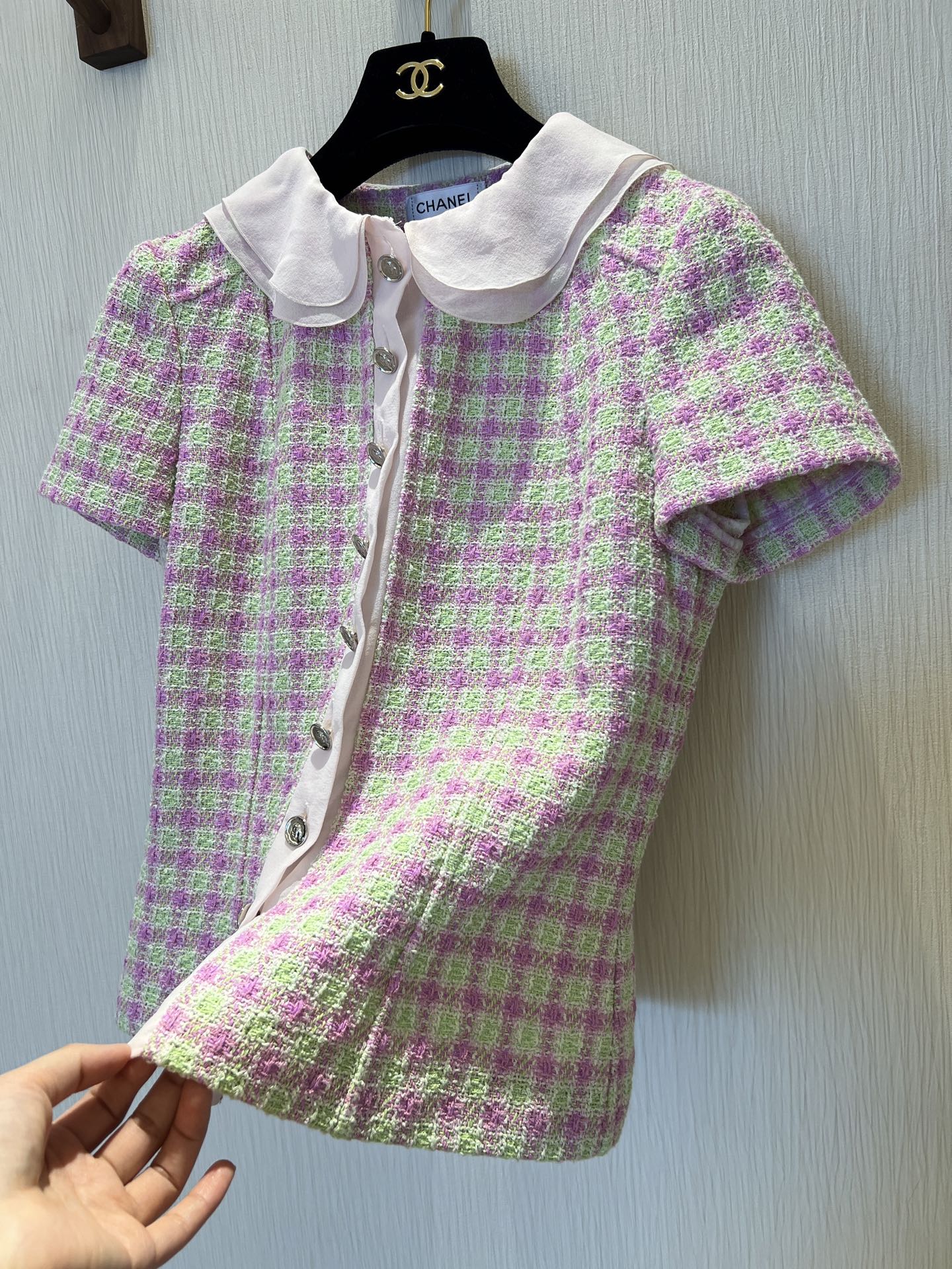 CC 25 Doll Collar Top Pink Green Tweed Fabric