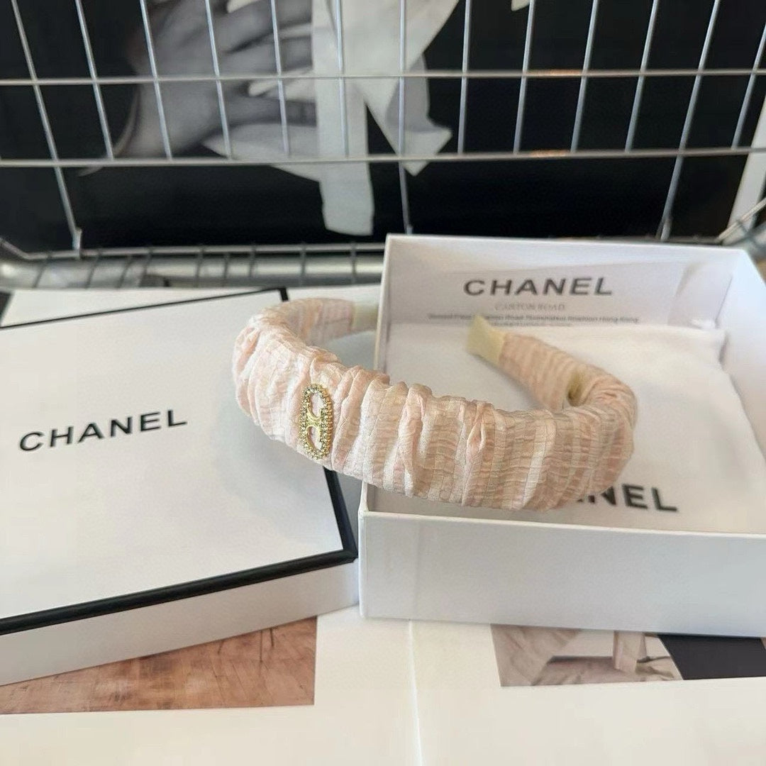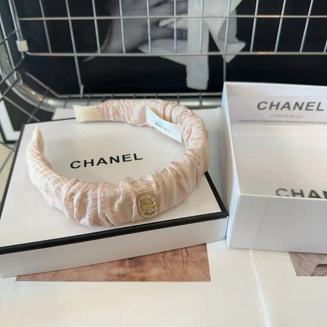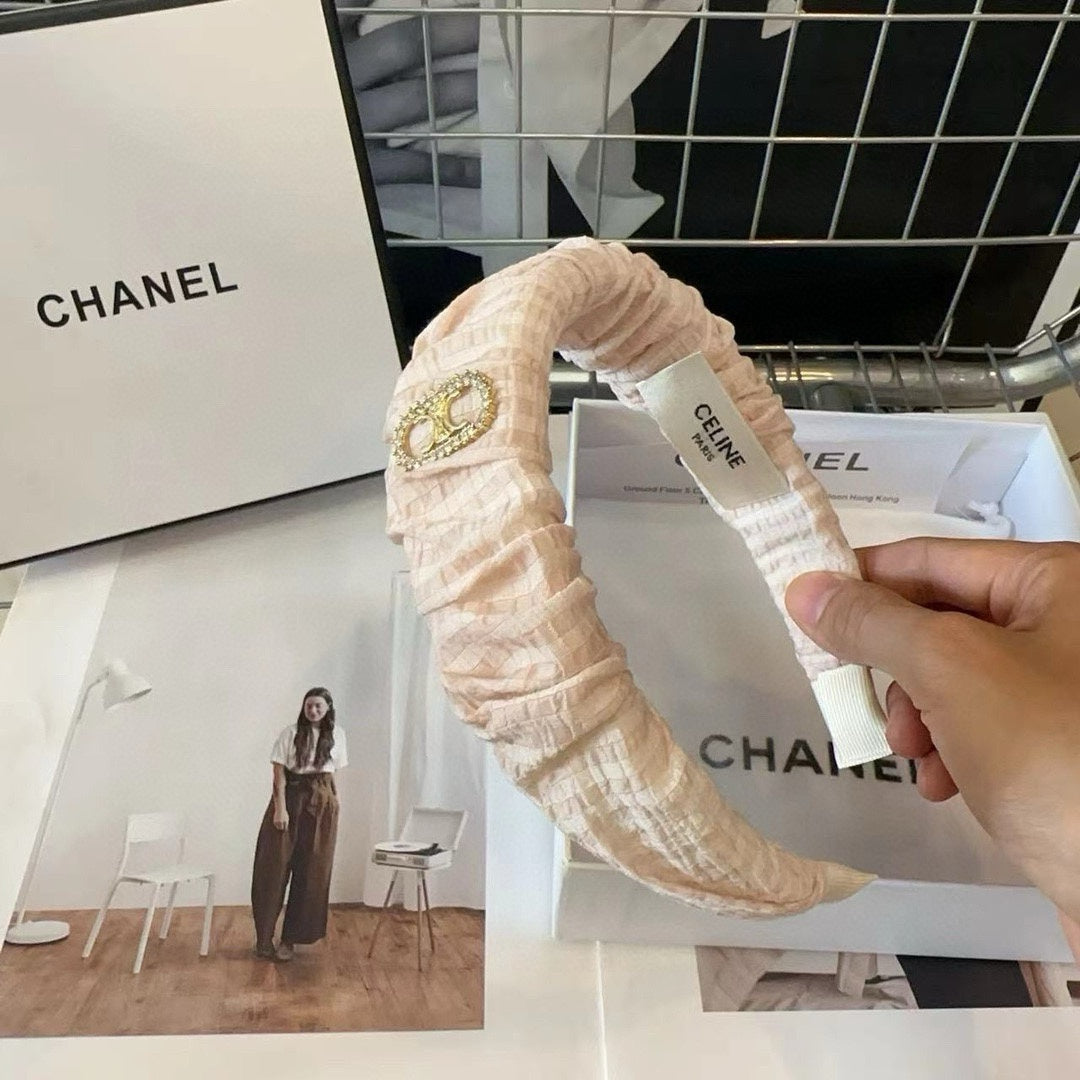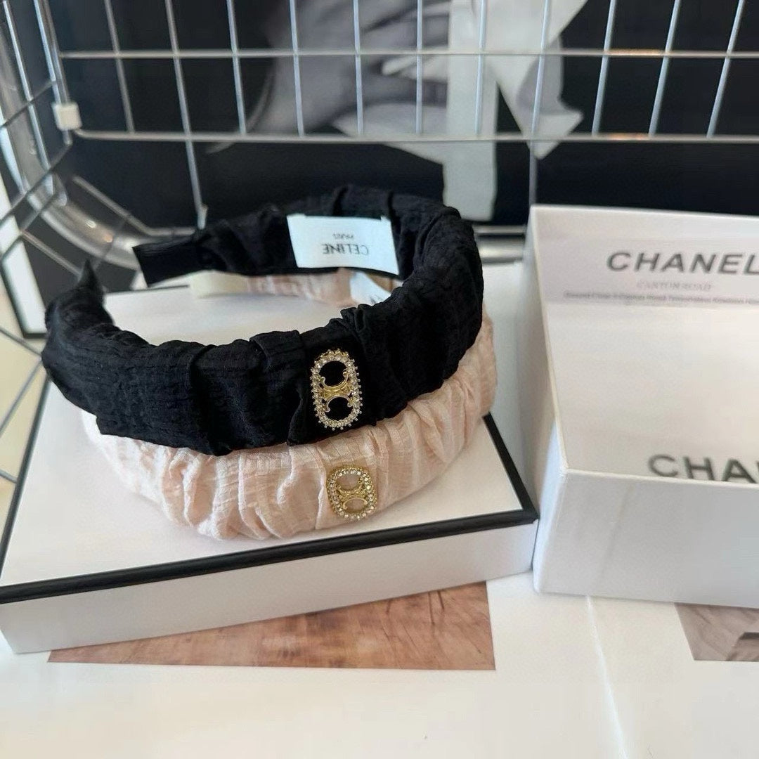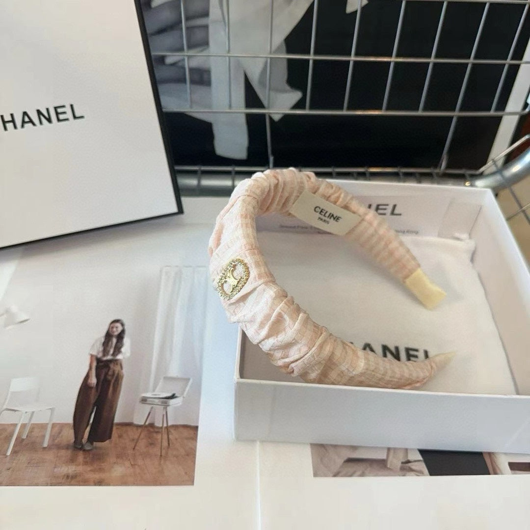 WHITE CREAM FABRIC WITH GOLD LOGO HAIRBAND 414447