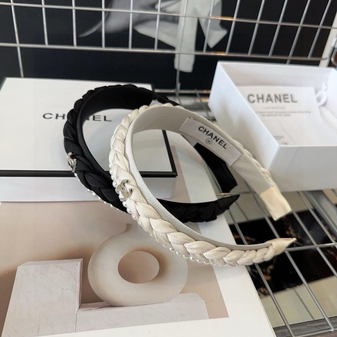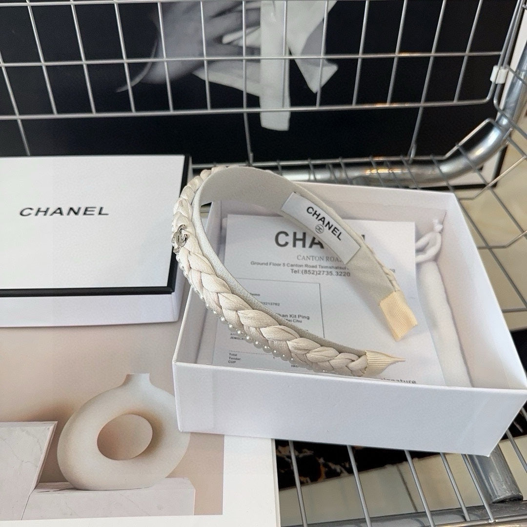 WHITE FABRIC HAIRBAND WITH PEARL CHAIN 412527