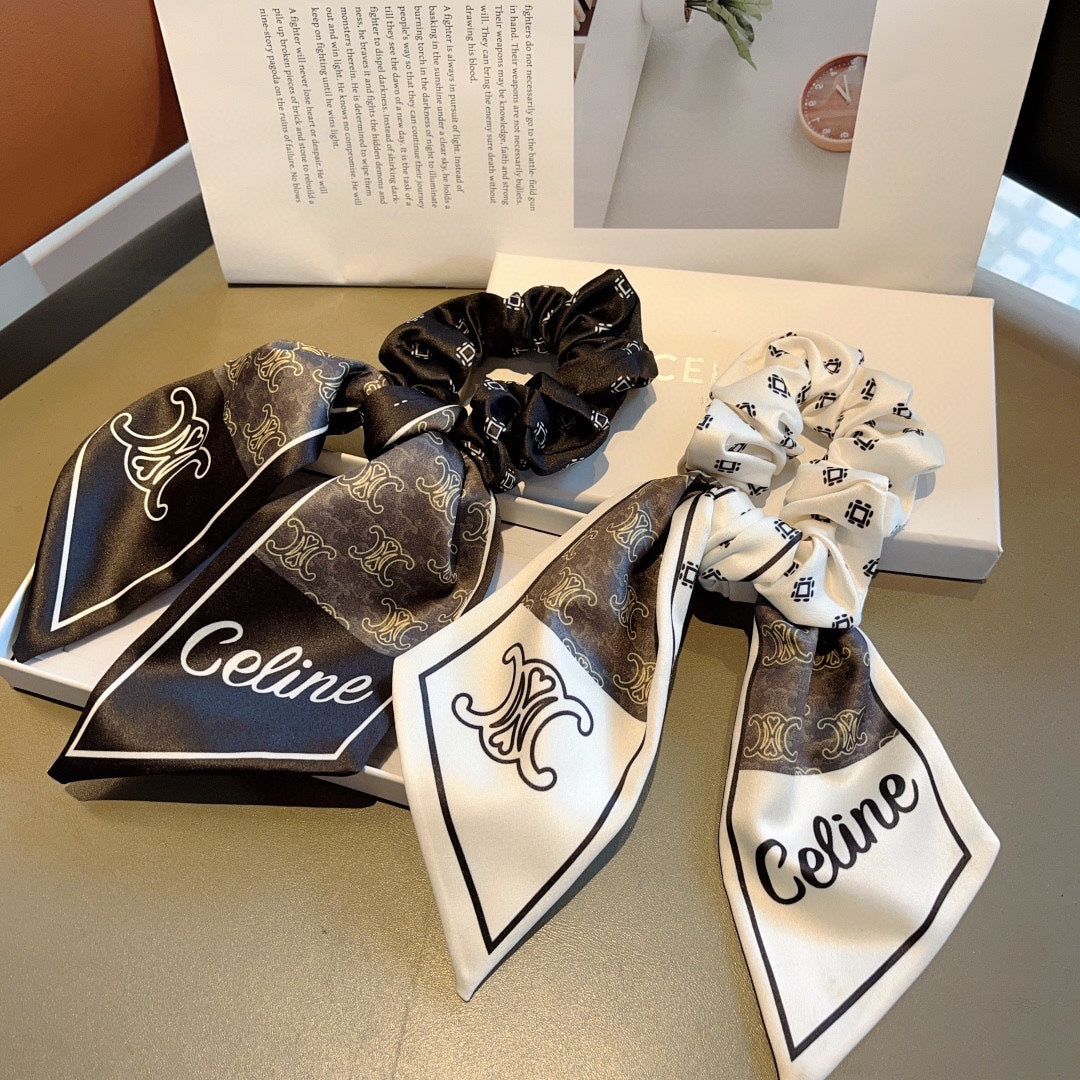 WHITE MIX BLACK SILK SCRUNCHIE 420657