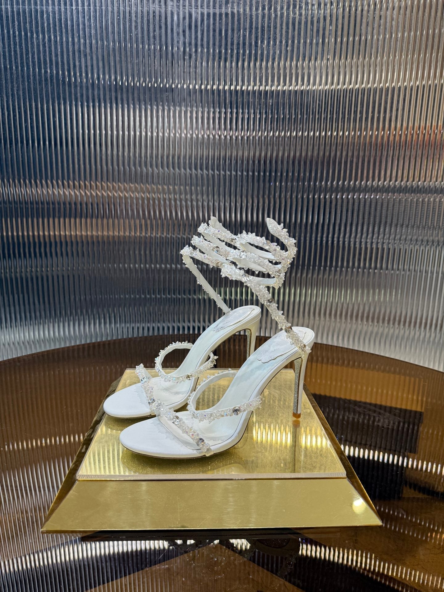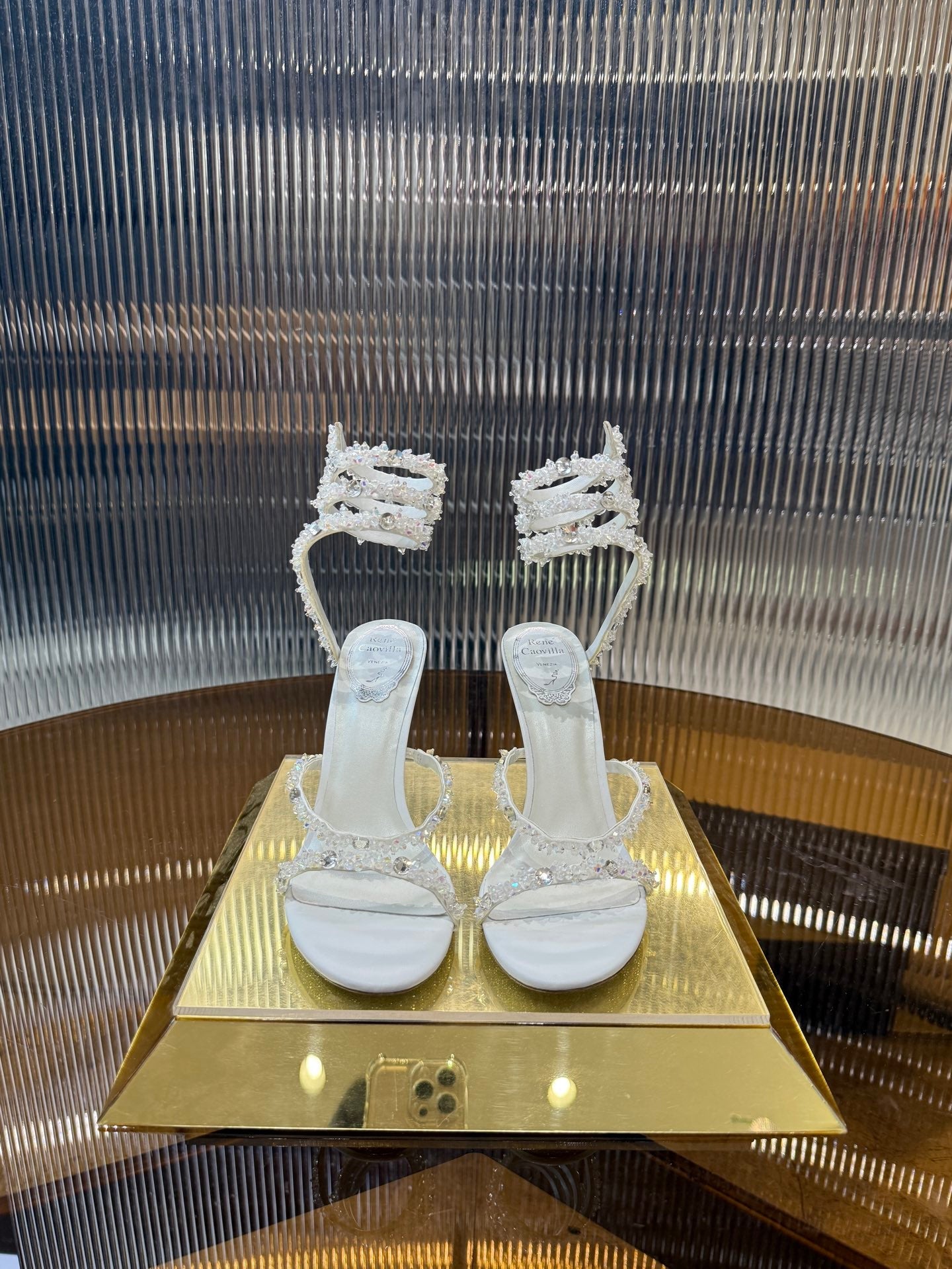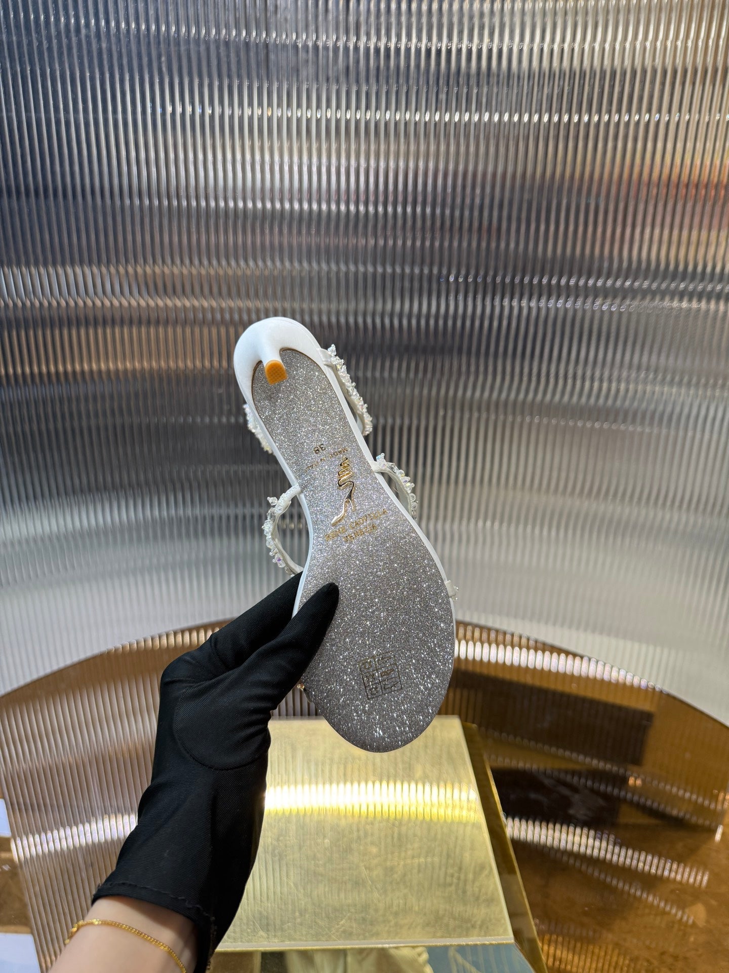 RC 25C Crystal Diamond Sandals White Sheepskin Rhinestone 275780