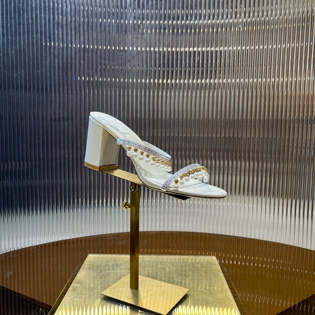 RC Gold Buckle Pearl Crystal Lamp Pendant Sandals 7.5 White Sheepskin 175000