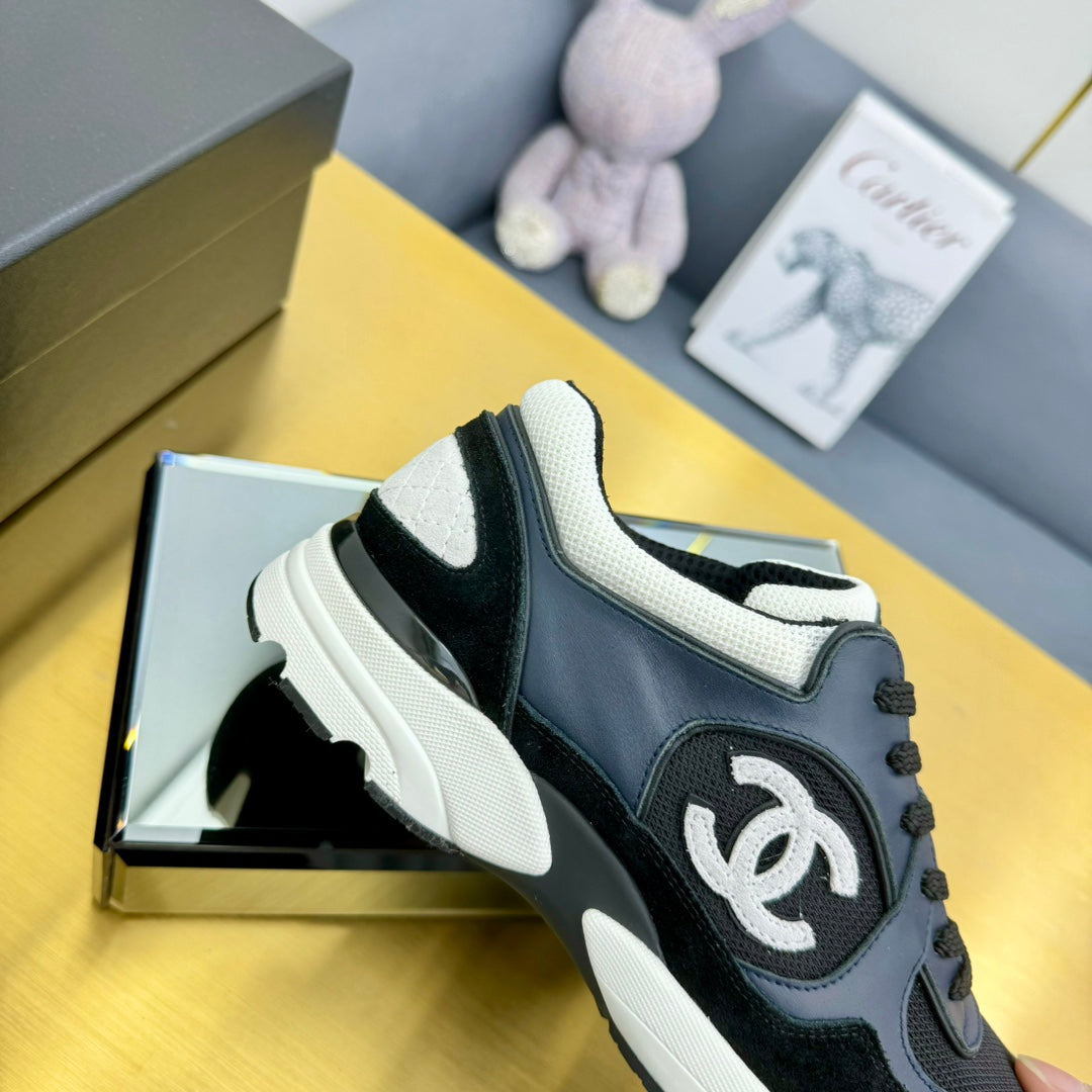 cc womens sneaker in black wool tweed navy blue calfskin and black suede calfskin 137571