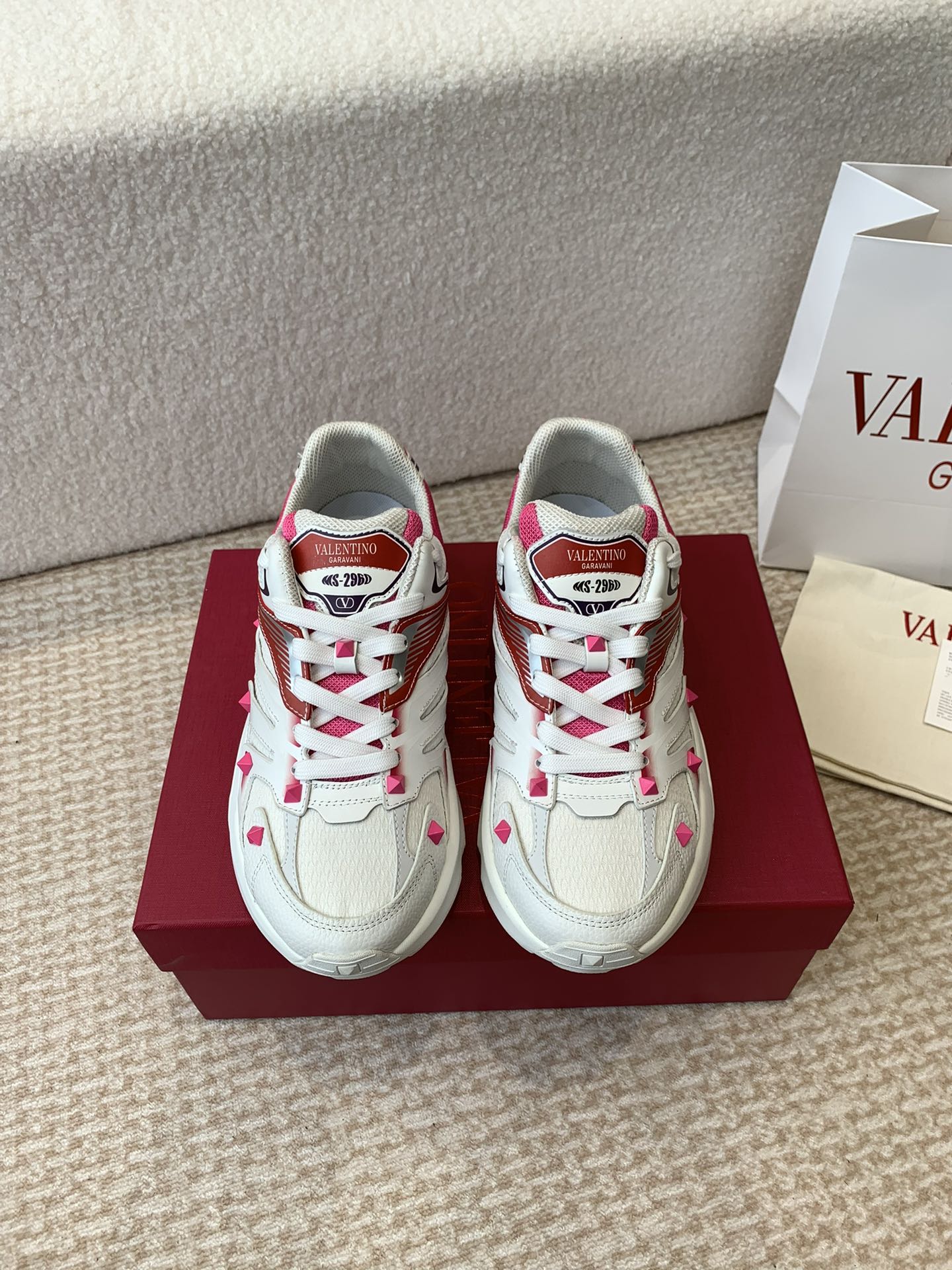 Valentino Sneaker 50mm In White Mix Red Pink Mesh Fabric And Cowhide 814276