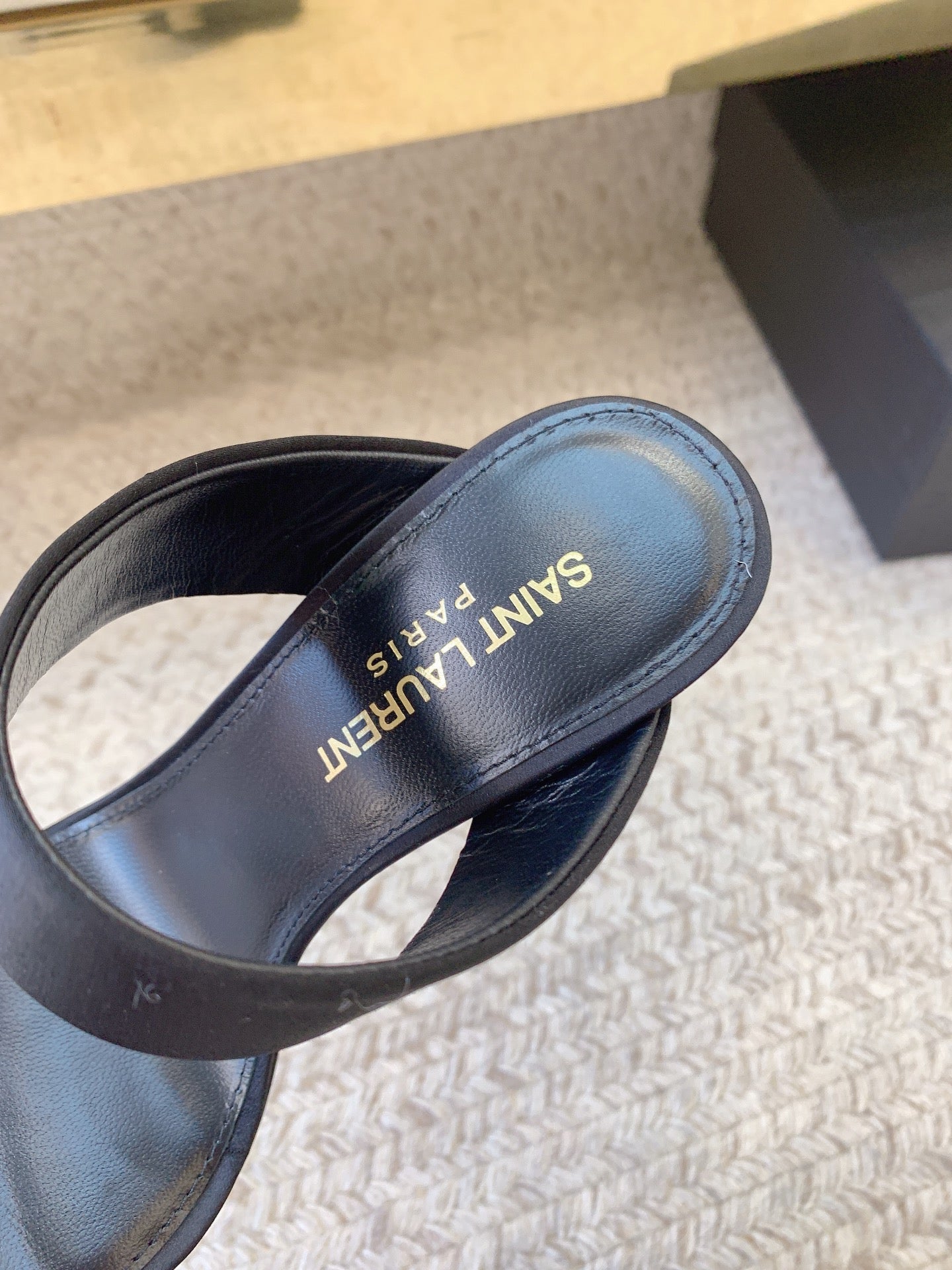 MARTHA POINTED OPEN-TOE HIGH MULES IN BLACK SILK