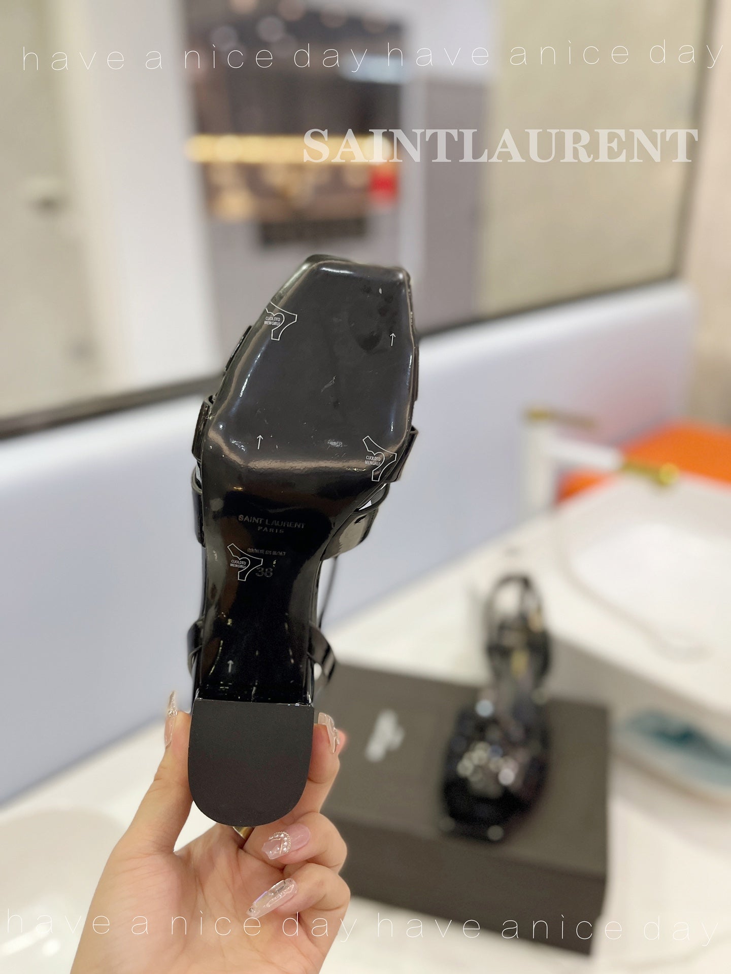 SL TRIBUTE SANDAL GLOSSY BLACK CALFSKIN