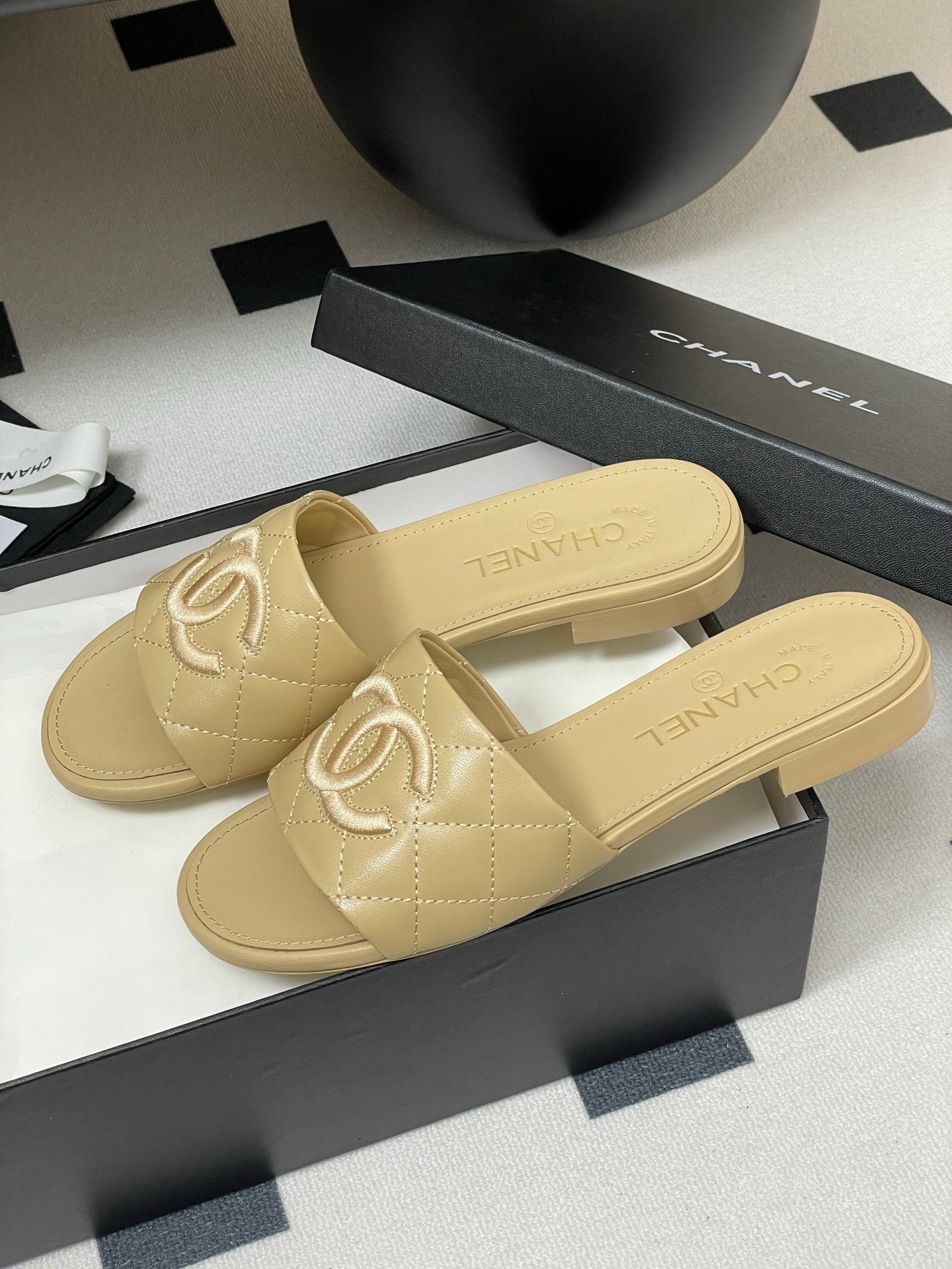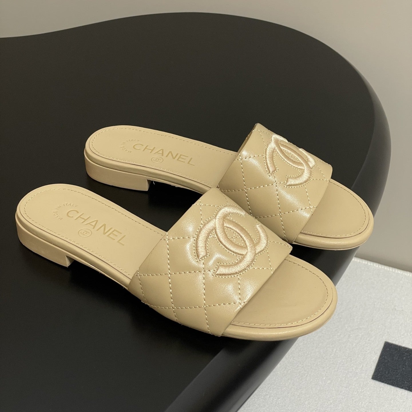 25S Embroidery Double C Mule 15mm Beige Lambskin 247581