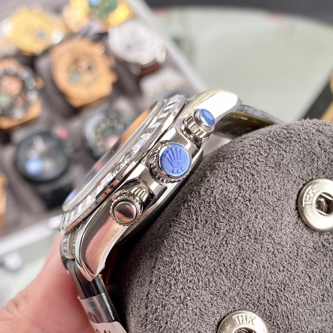 DAYTONA SET WITH 36 BAGUETTE-CUT DIAMONDS BLACK LEATHER