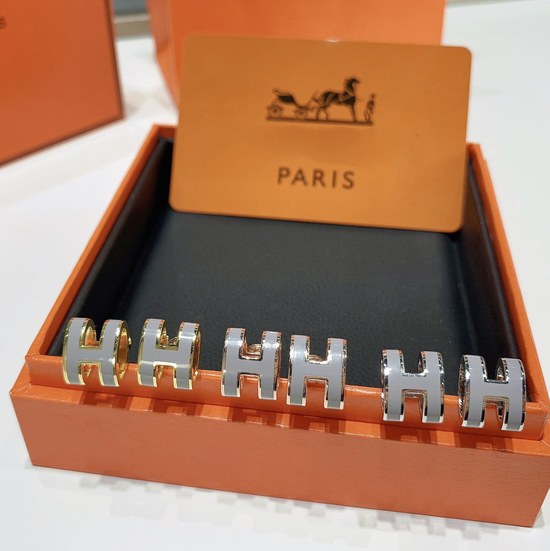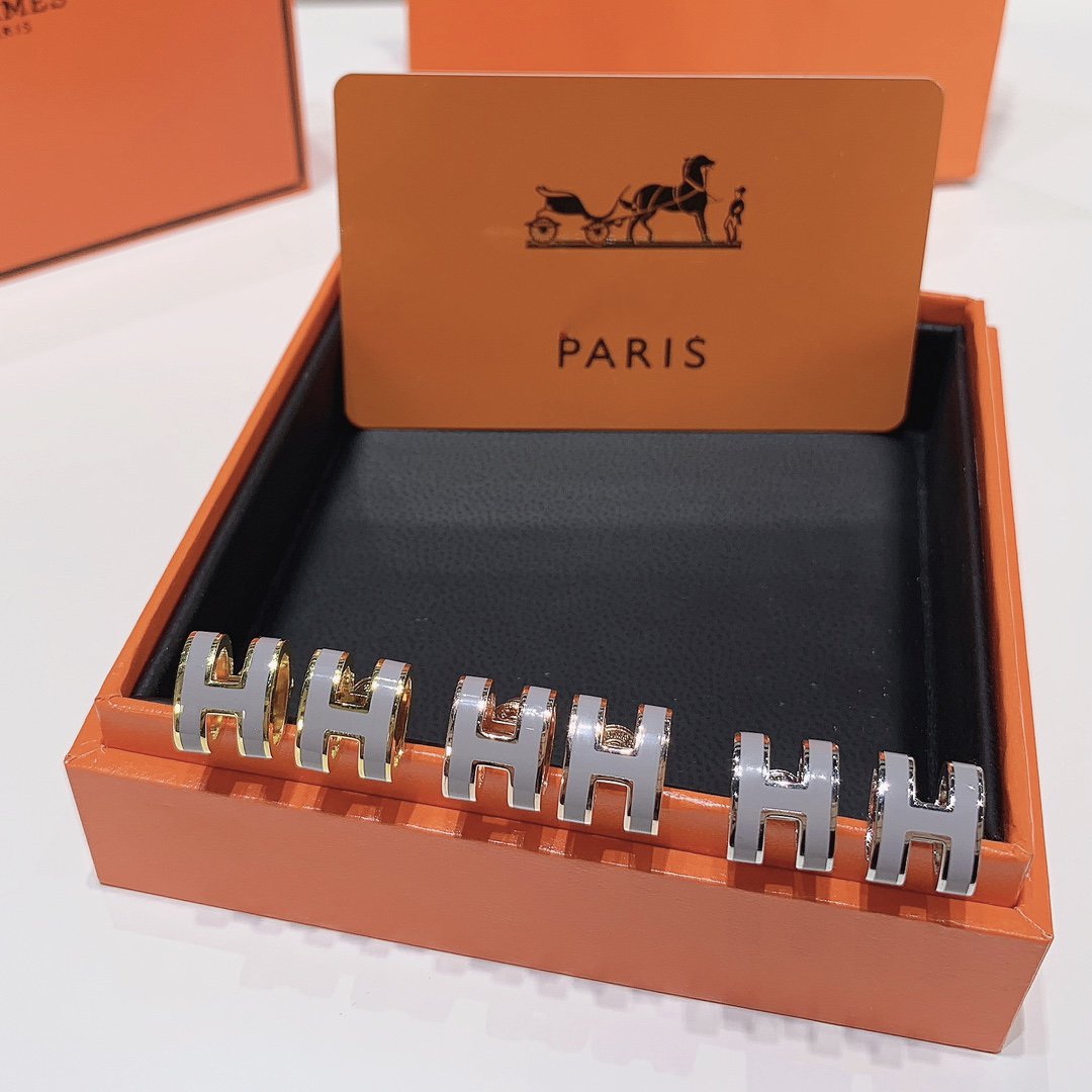 GOLD LACQUERED MINI POP H EARRINGS LIGHT GRAY