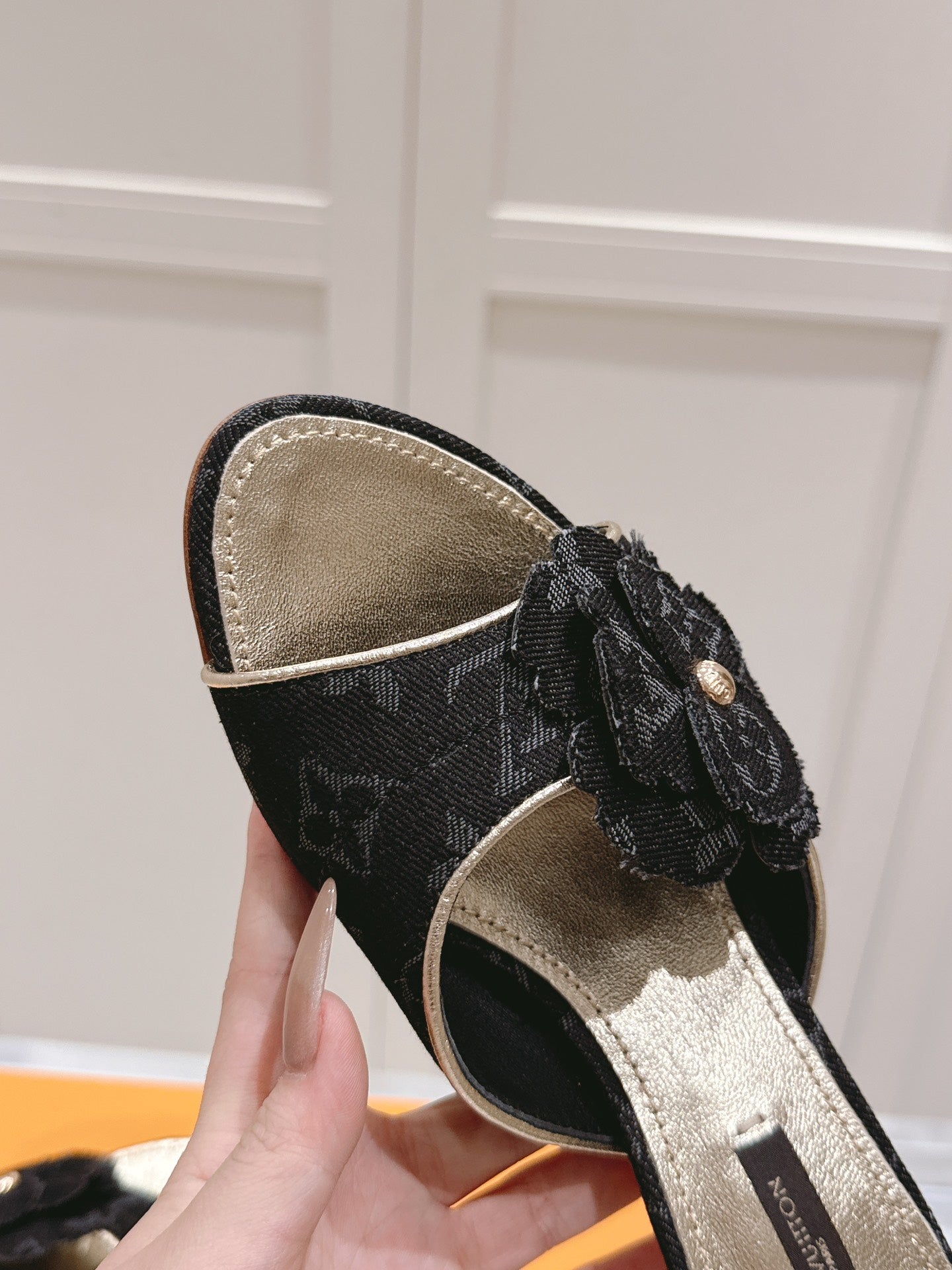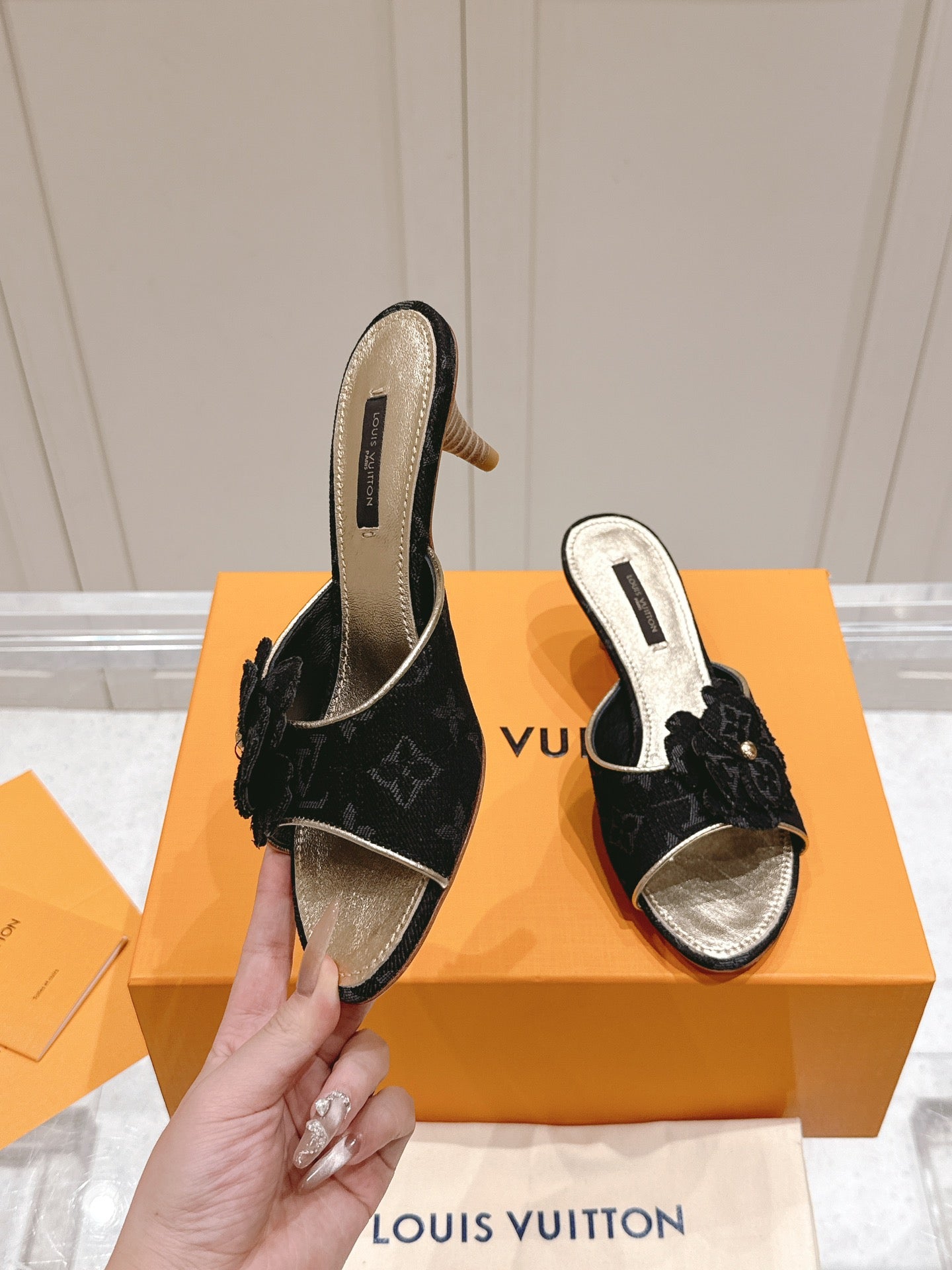 LV Floral Embroidered High Heels Black Monogram Denim 480507