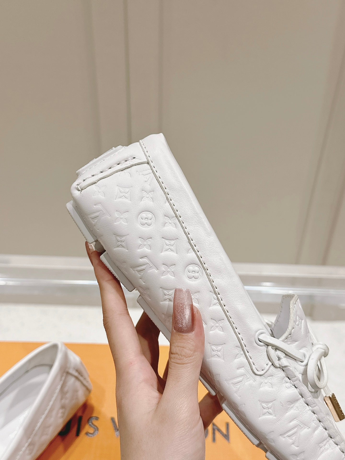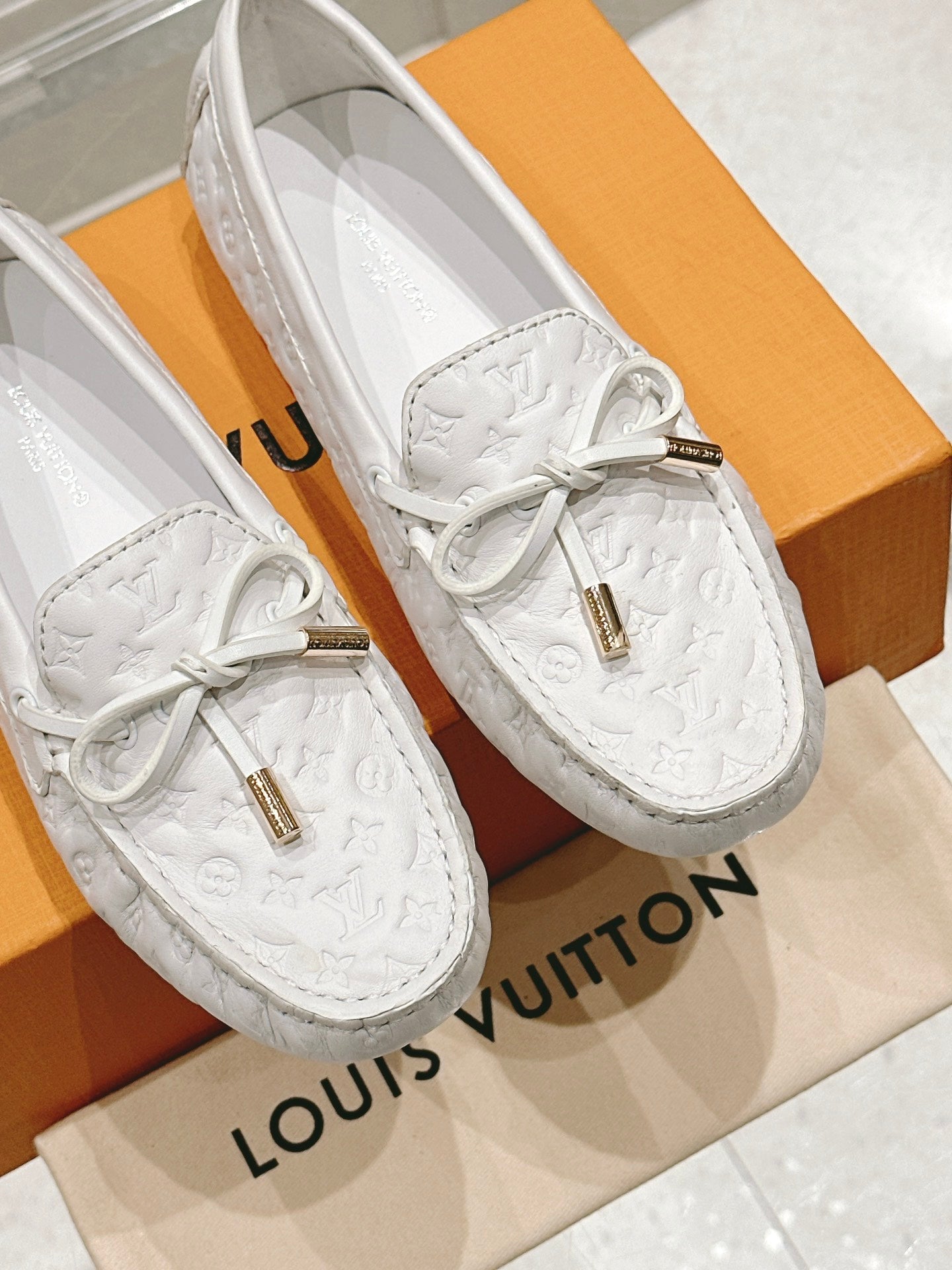LV Gloria Loafer White Embossed Calfskin 480739