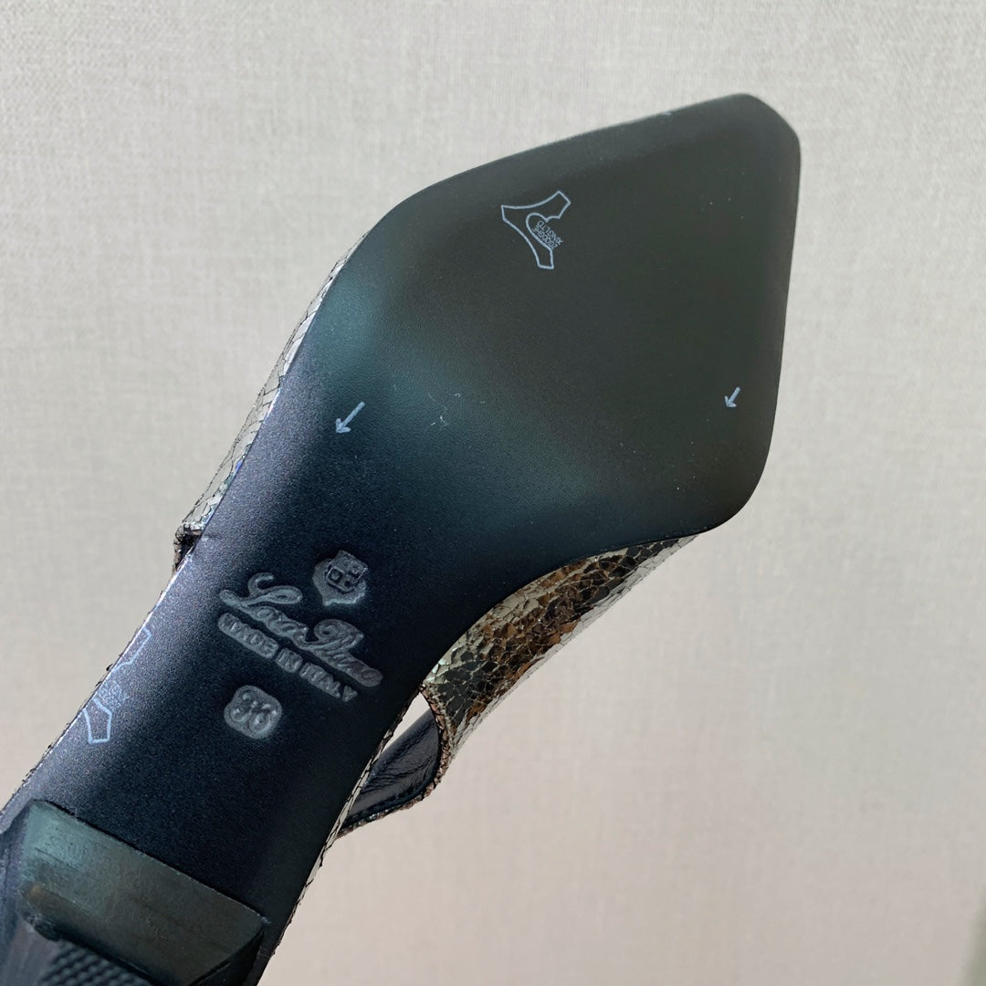 Rebecca Slingbacks 50 Black Silver Calfskin