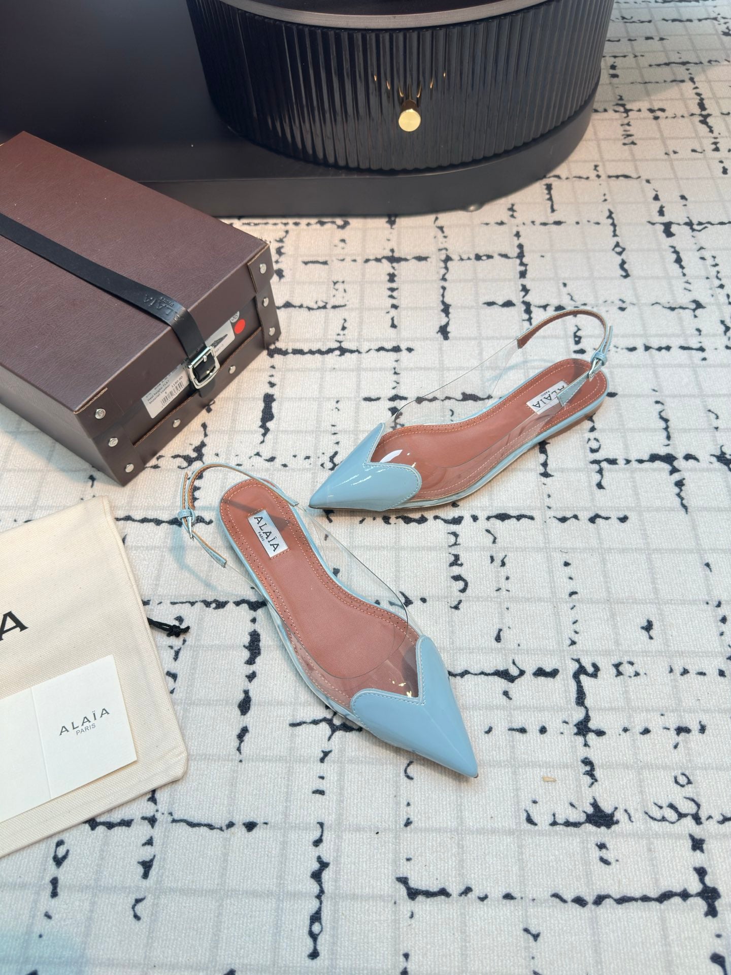 Alaia Heart Flat Slingbacks in pelle di pecora blu 800938