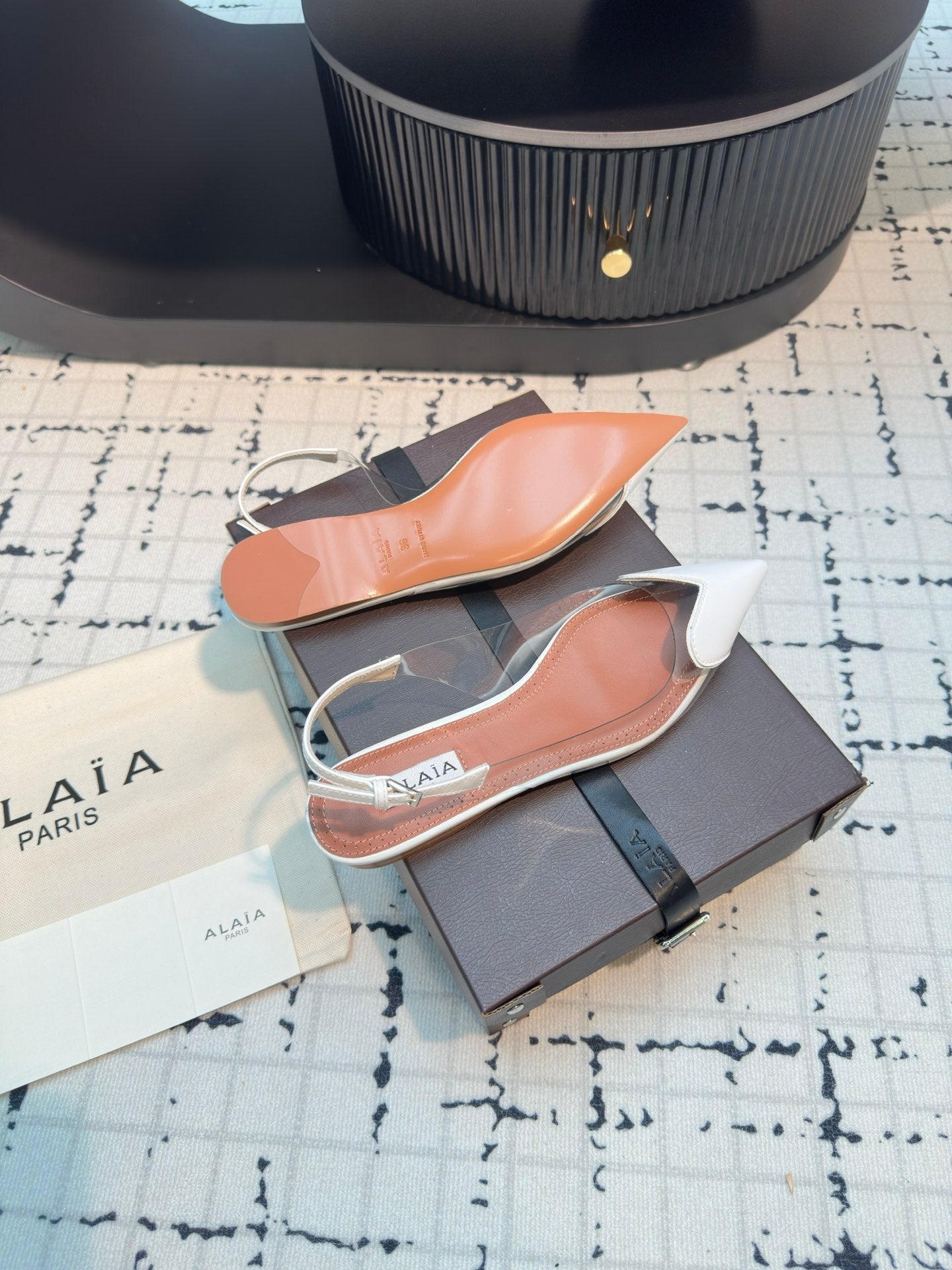 Alaia Heart Flat Slingbacks in pelle di pecora bianca 800937