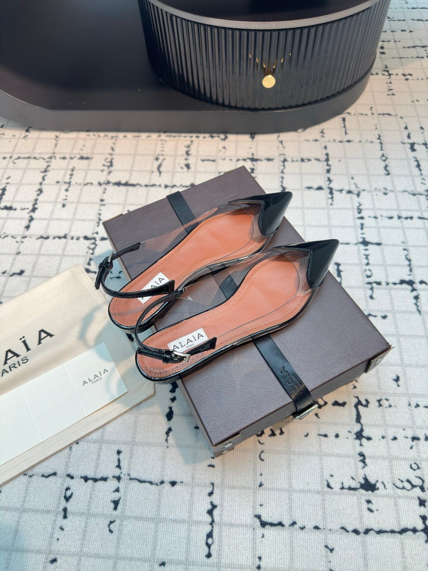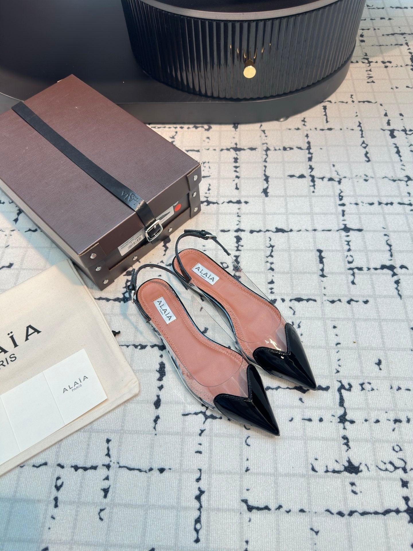 Alaia Heart Flat Slingbacks in pelle di pecora nera 800943