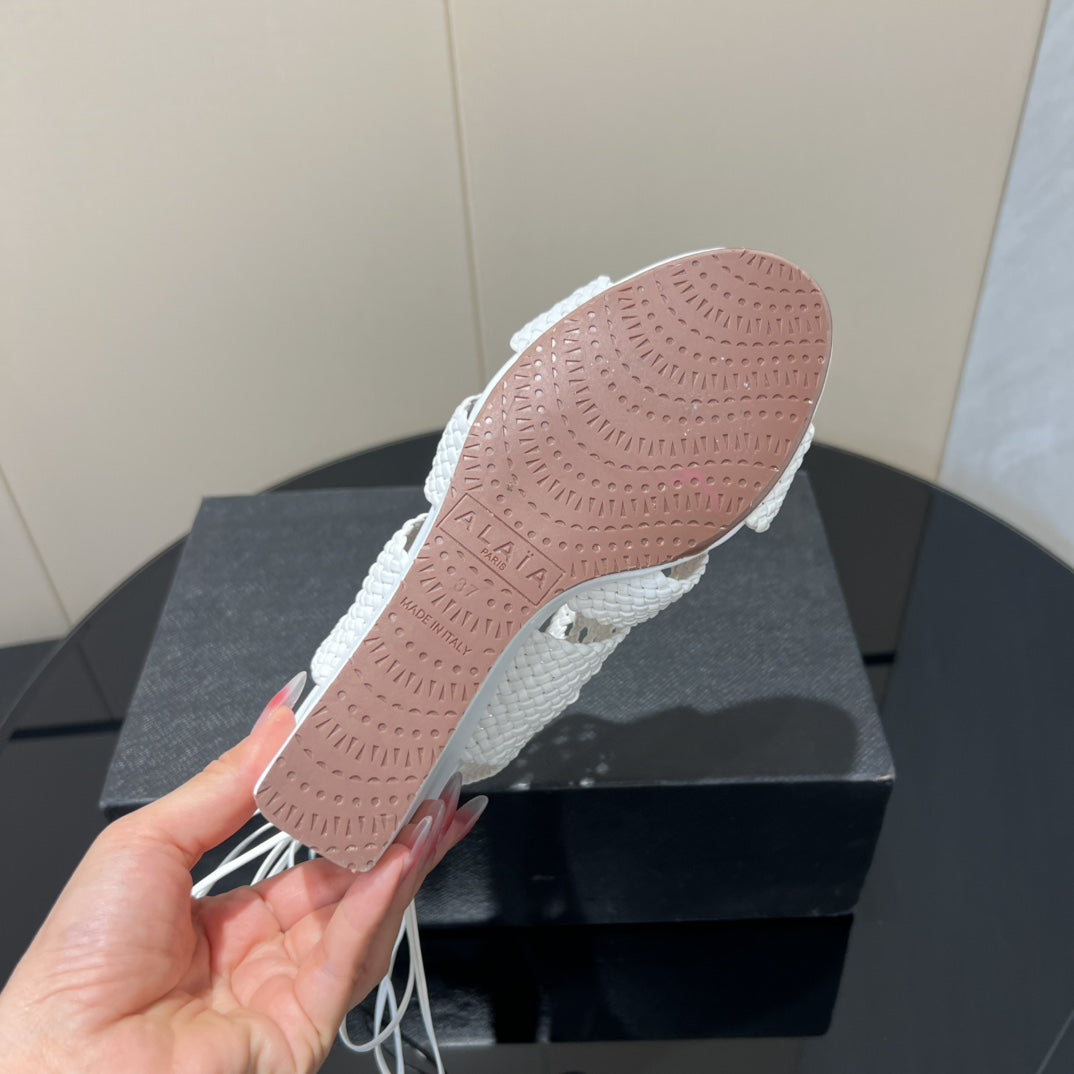 Sandali con zeppa intrecciata a punta tonda Alaia 25 da 75 mm in pelle intrecciata bianca 433566