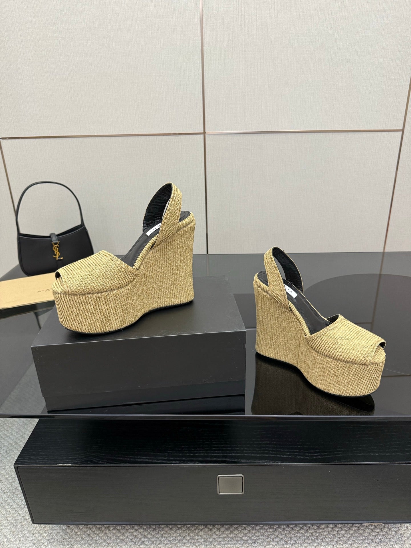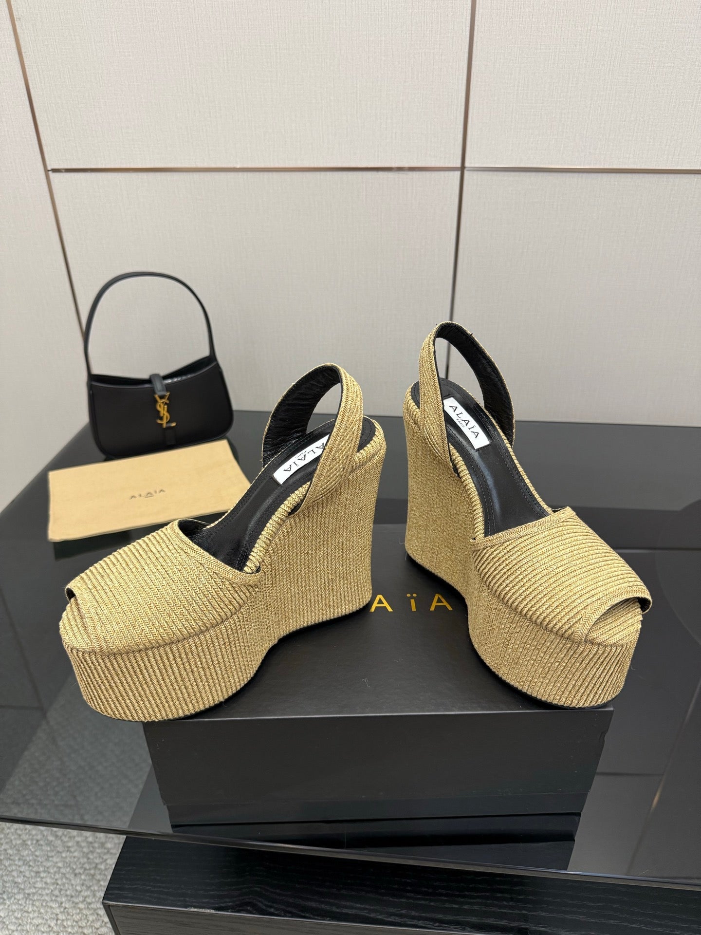 Sandalo con plateau ALAIA in montone beige dorato 389630