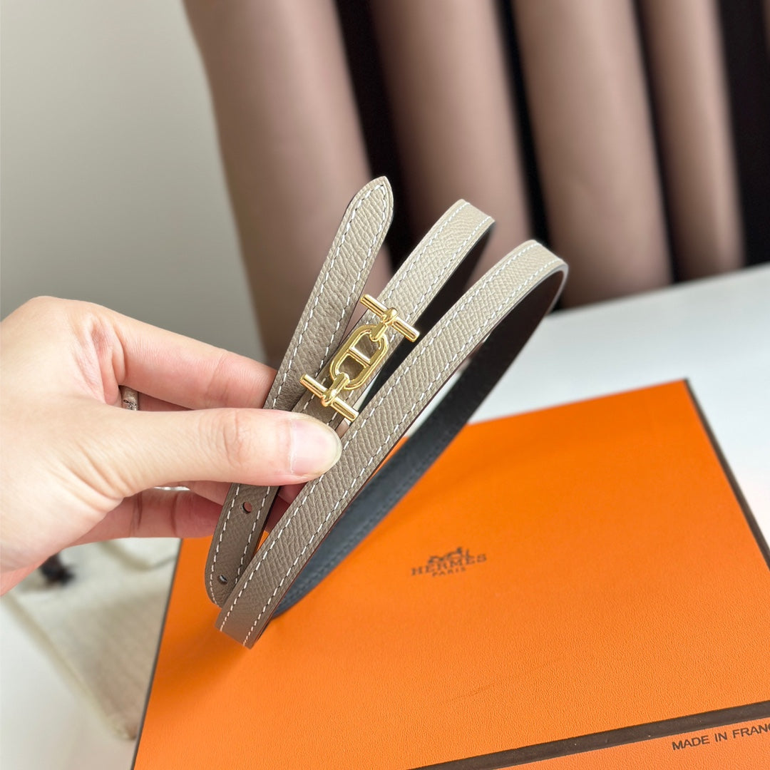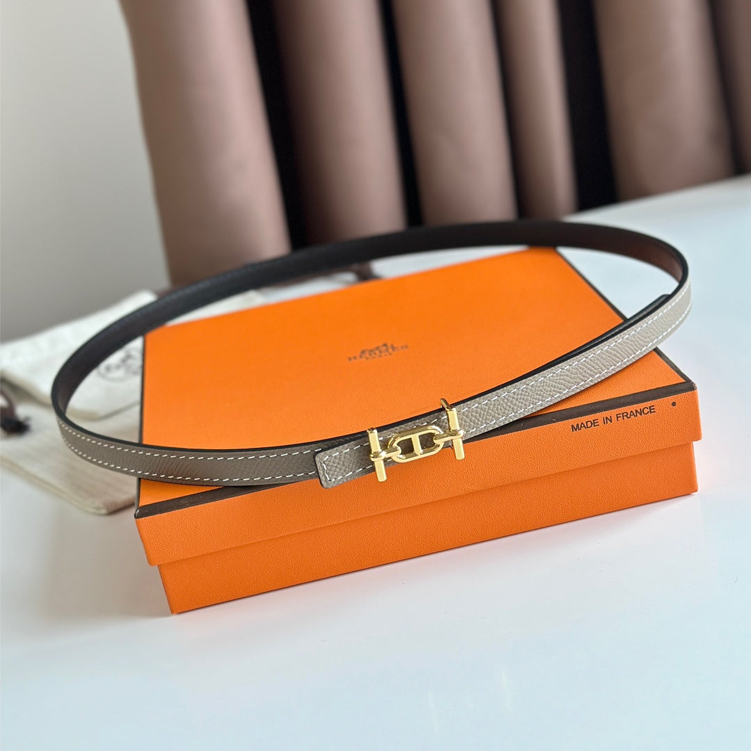FIBBIA HM ANCRE E CINTURINO REVERSIBILE IN PELLE NERA E MARRONE KAKI 13 MM FERRAMENTA ORO