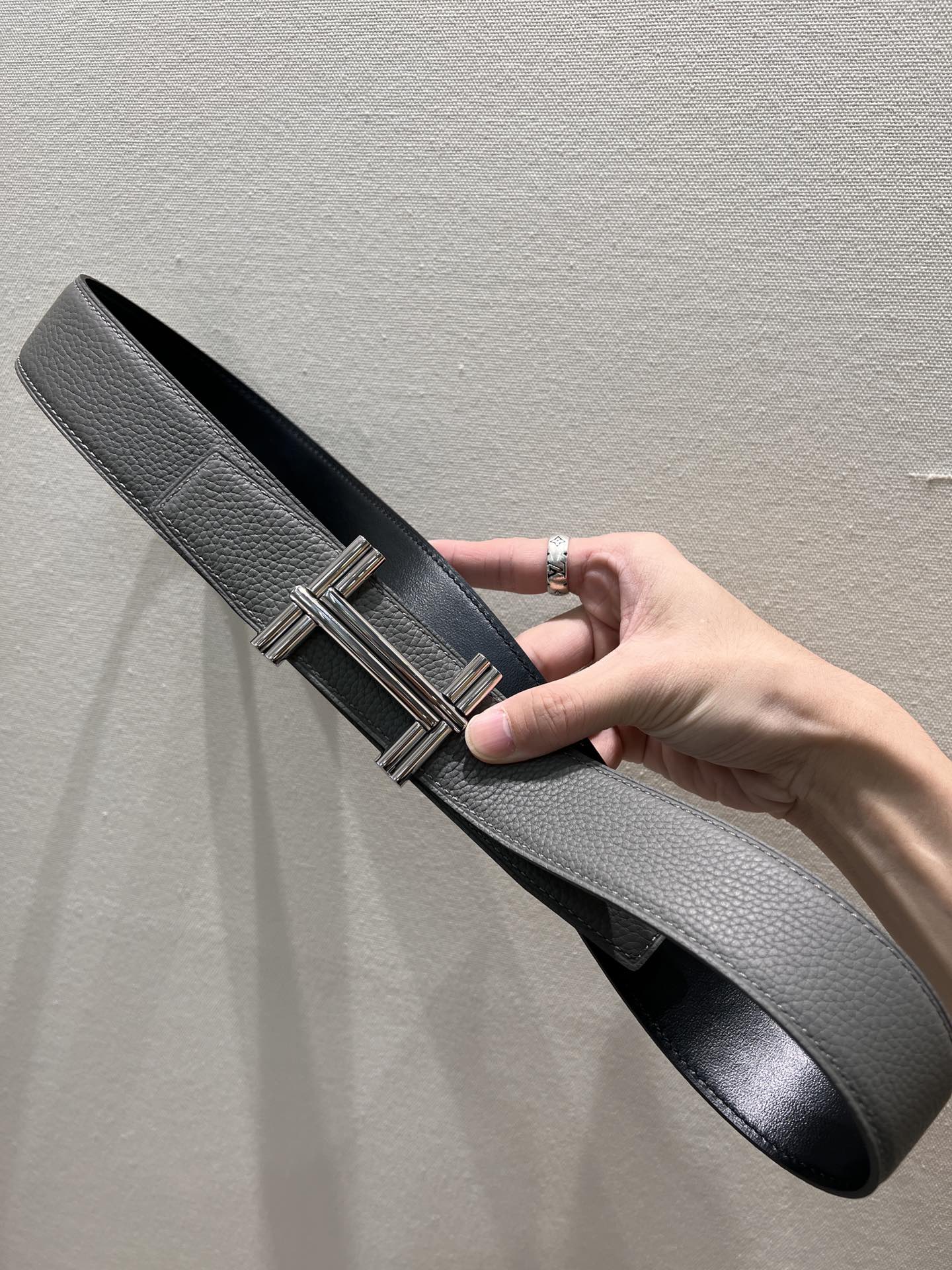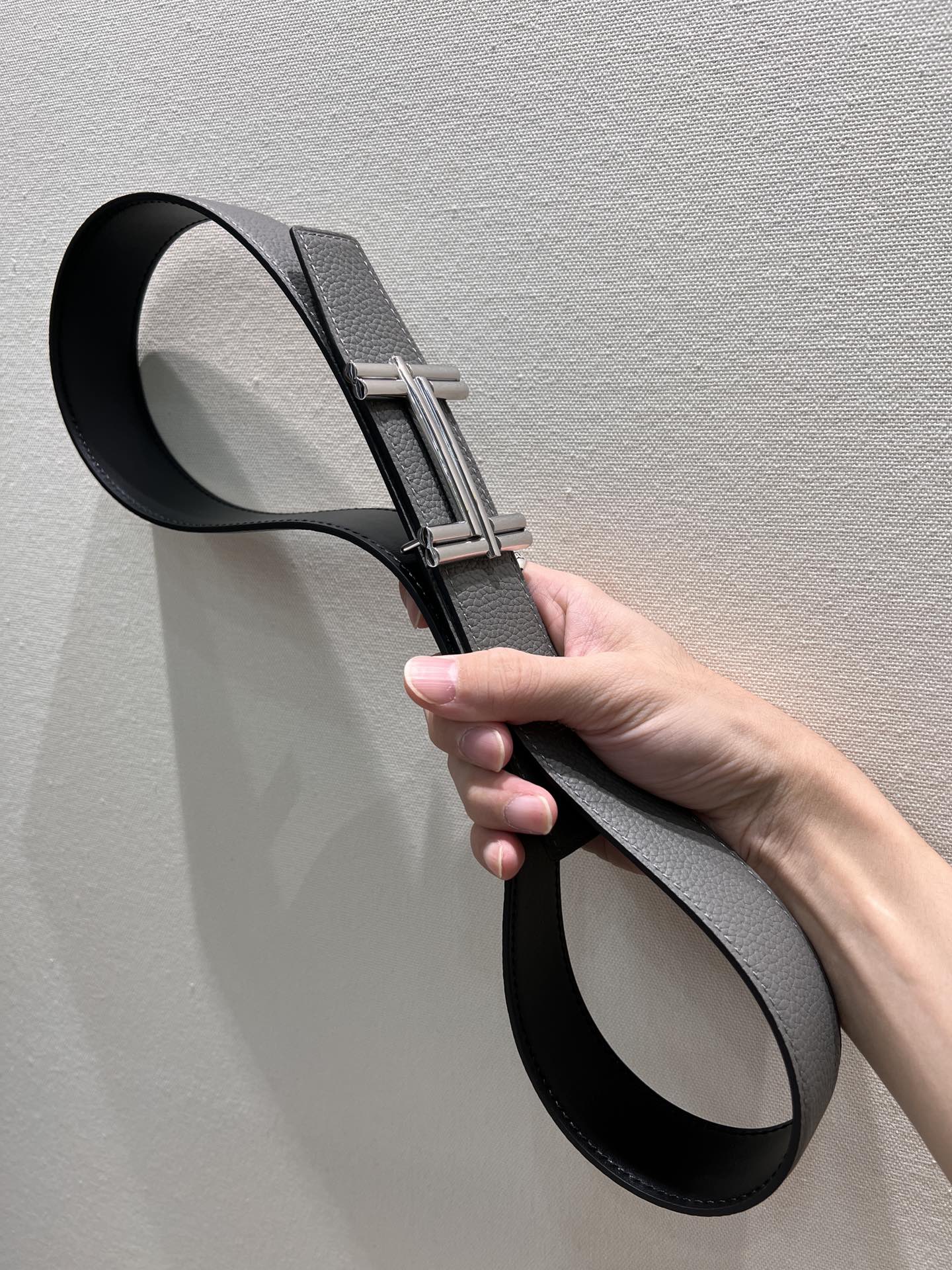 FIBBIA PER CINTURA HM TRAVERSE E CINTURINO REVERSIBILE IN PELLE GRIGIA E NERA 38 MM FERRAMENTA ARGENTO